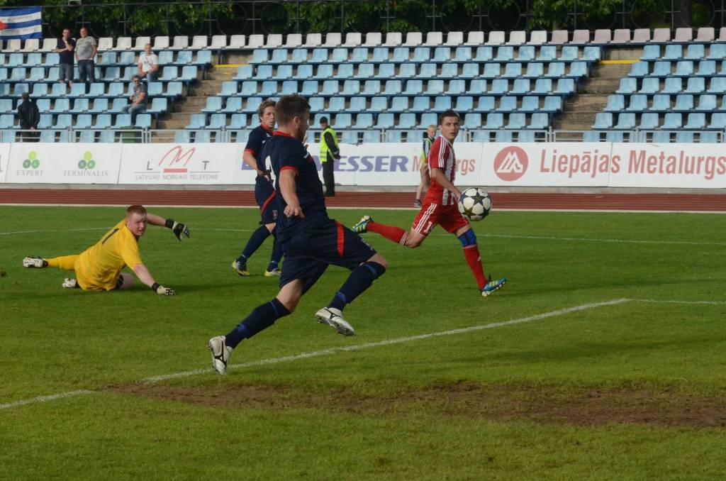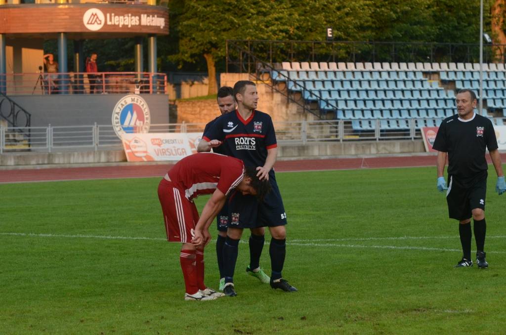 Pamatlaikā liepājnieki zaudēja ar 1:2 un rezultāts divu spēļu summā kļuva 3:3. Papildlaikā vārti netika gūti.