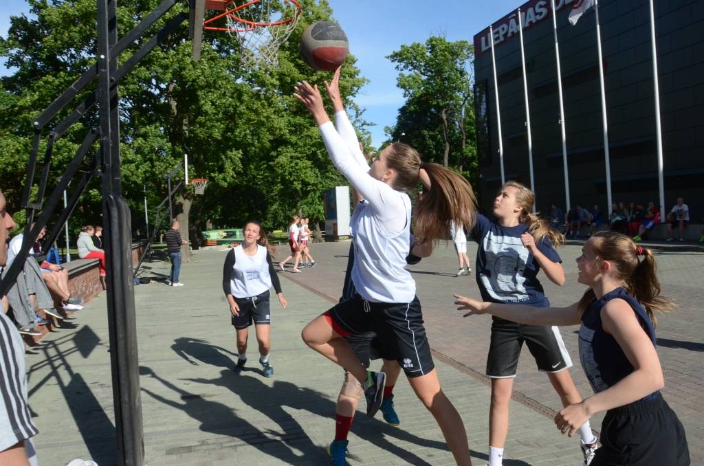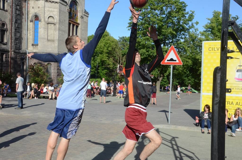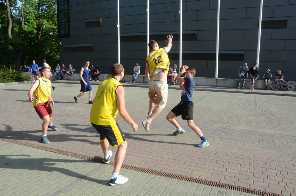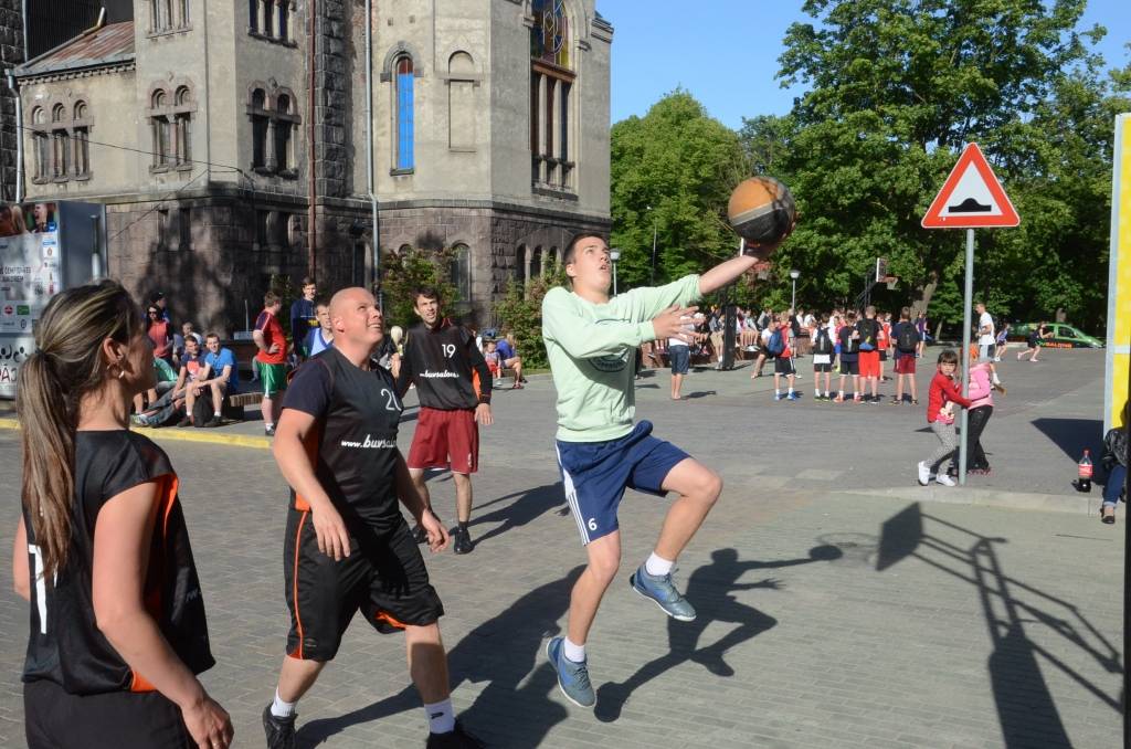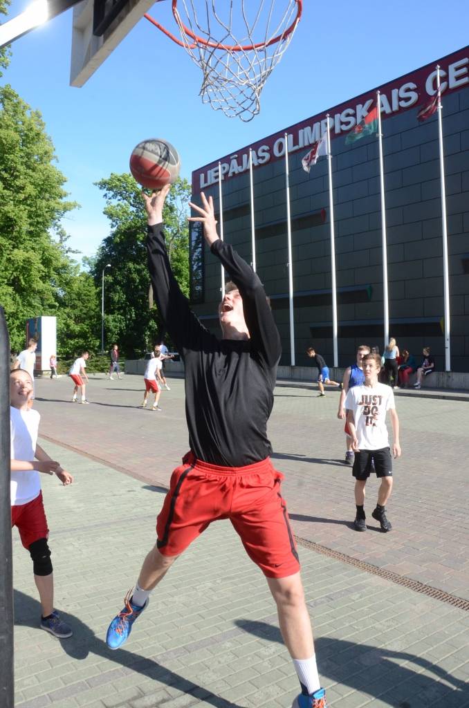PAPILDINĀTS AR REZULTĀTIEM. Stāvlaukumā pie Liepājas Olimpiskā centra trešdien, 11. jūnijā, notika Liepājas ielu basketbola čempionāta “Bruģa bumba 2014” otrais posms.