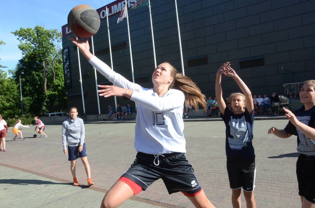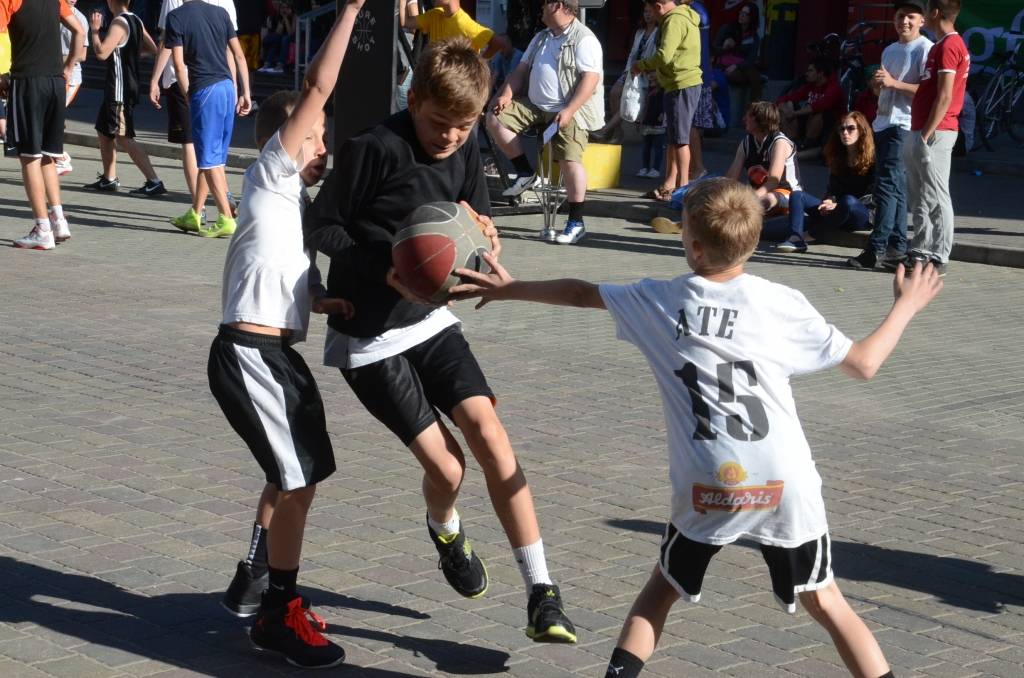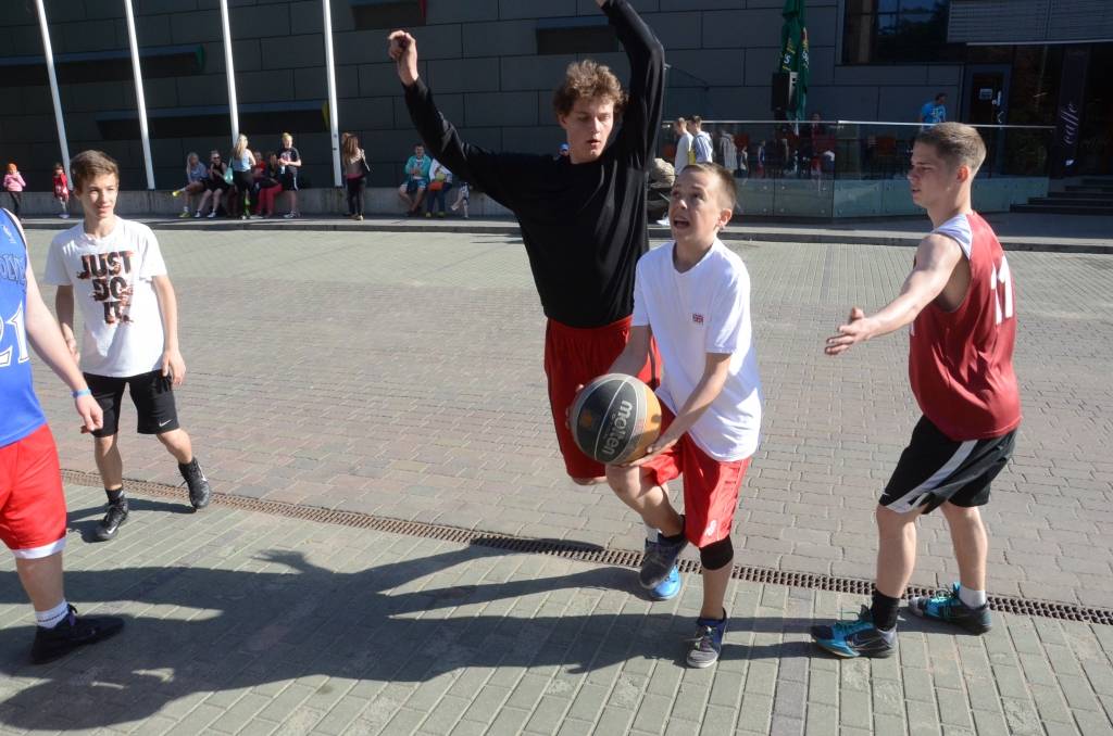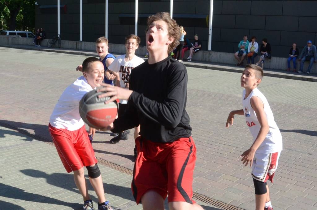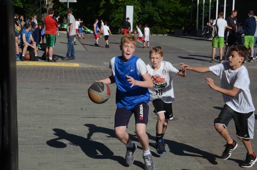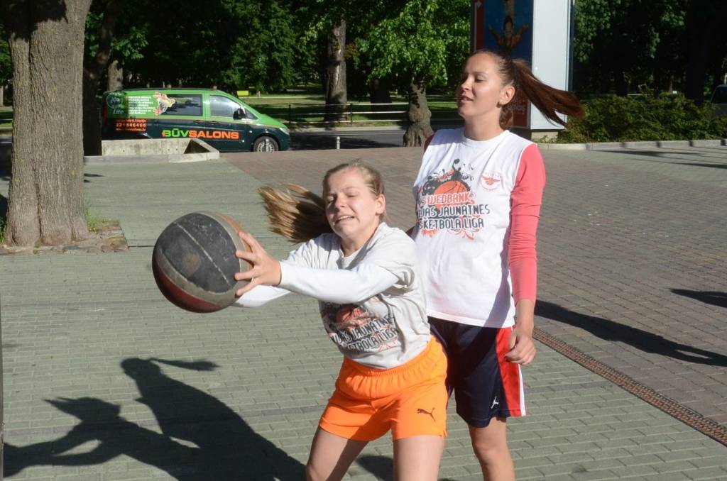 PAPILDINĀTS AR REZULTĀTIEM. Stāvlaukumā pie Liepājas Olimpiskā centra trešdien, 11. jūnijā, notika Liepājas ielu basketbola čempionāta “Bruģa bumba 2014” otrais posms.