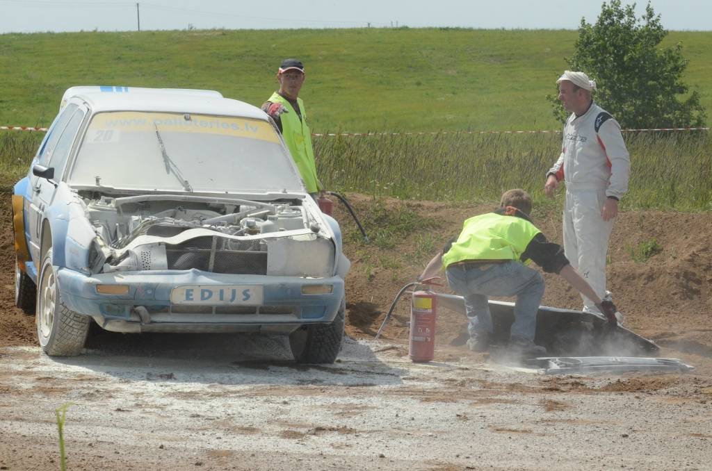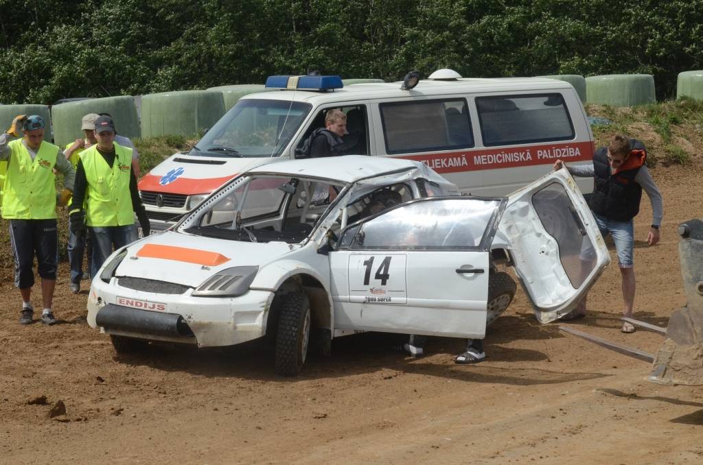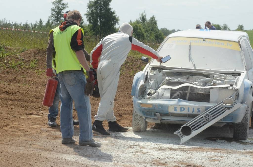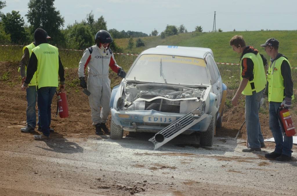Vecpilniekam Sandim Džeriņam sestdien, 28. jūnijā, Vecpils autotrasē neveicās Latvijas autokrosa čempionāta otrajā posmā. Viņš trešajā kfalifikācijas braucienā apmeta pamatīgu kūleni. Posmā iespaidīgus kūleņus apmeta arī Popes autokrosists Endijs Skolmeistars un Andis Vanters no Valmieras.