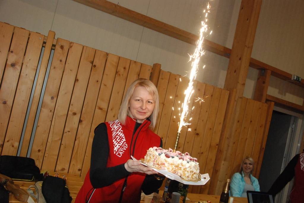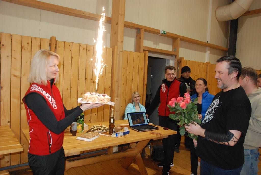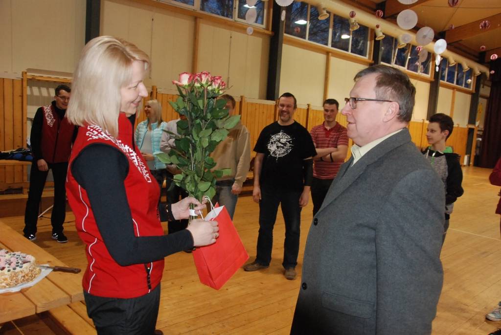D. Lēvaldi sveica gan kluba biedri, gan Grobiņas novada domes priekšsēdētājs Aivars Priedols, kurš šāvējai uzdāvināja Grobiņas novada karogu. Savukārt Grobiņas Sporta centra direktors Andis Ādiņš dāvanā pasniedza treniņtērpu.