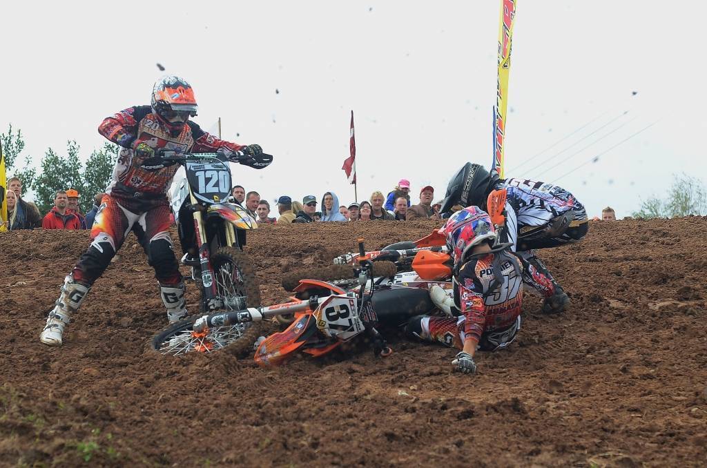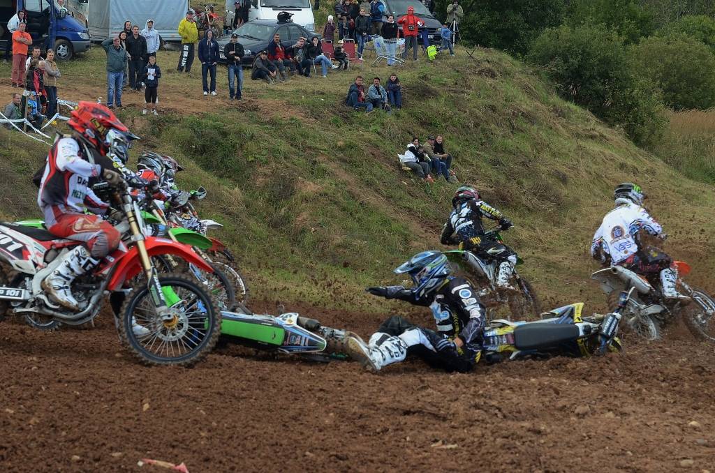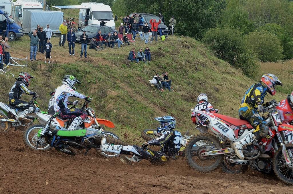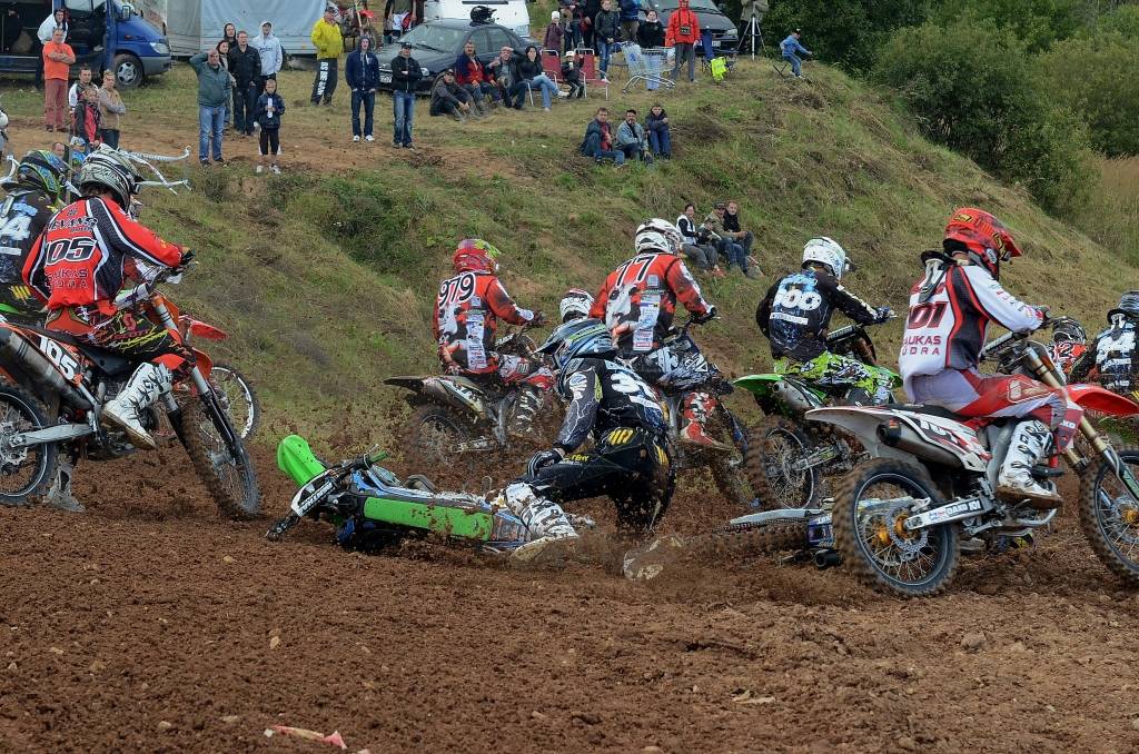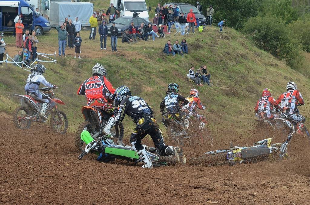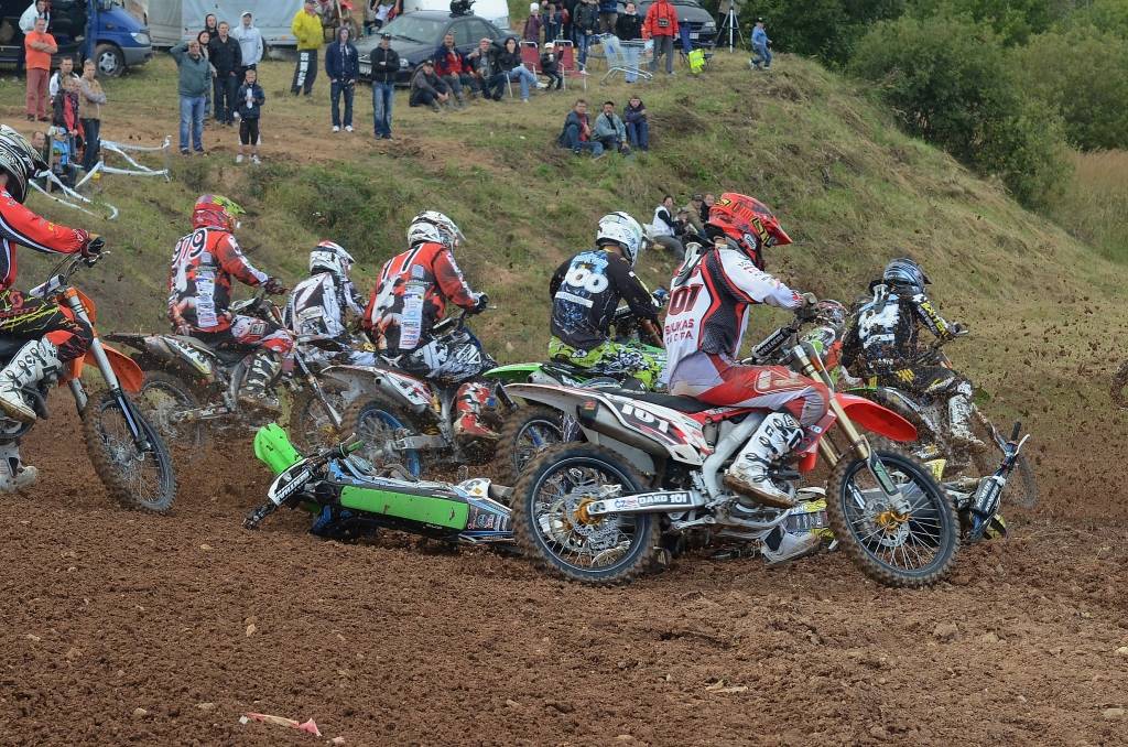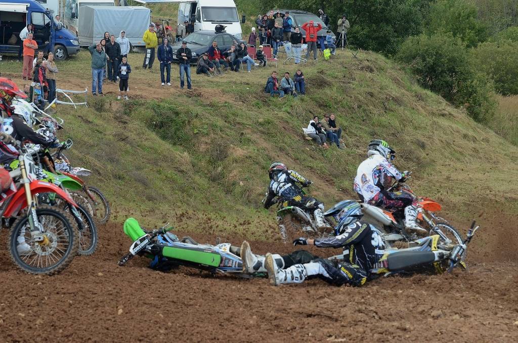 Bildes no motokrosa sacensību “Battery Superkauss 2012” pēdējā posma 16. septembrī Bērzu mototrasē Saldū, kur dramatisks bija “MX Pro” klases otrais brauciens.