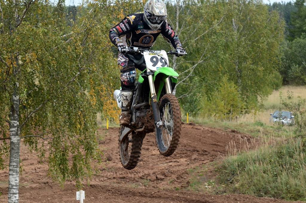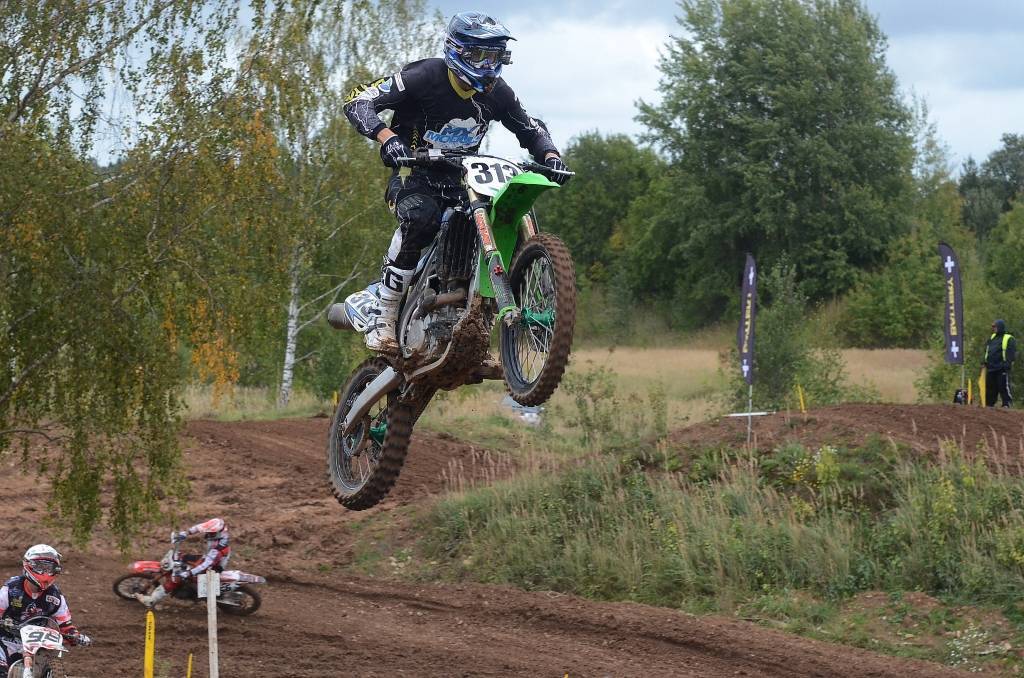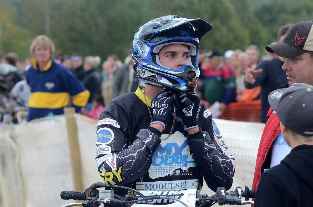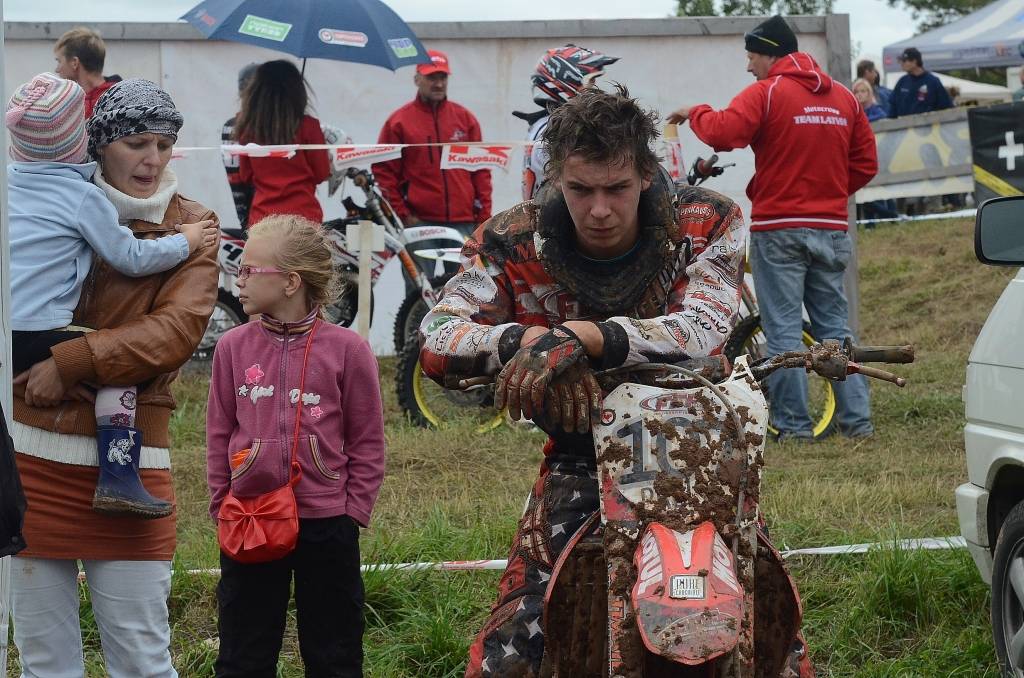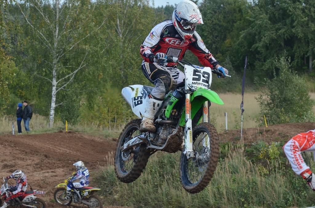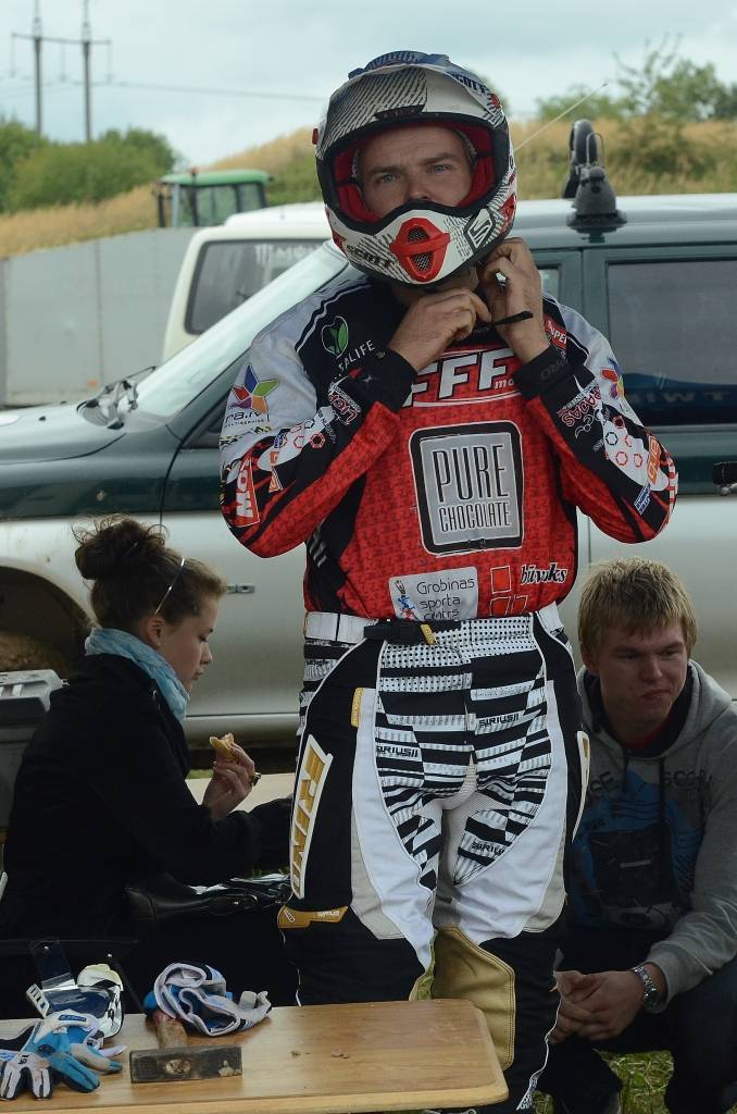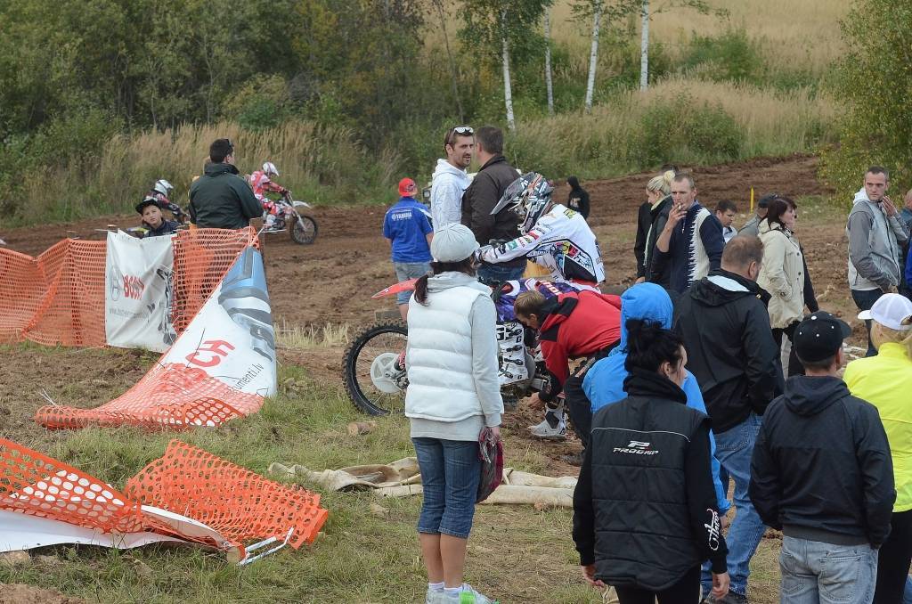Bildes no motokrosa sacensību “Battery Superkauss 2012” pēdējā posma 16. septembrī Bērzu mototrasē Saldū, kur dramatisks bija “MX Pro” klases otrais brauciens.