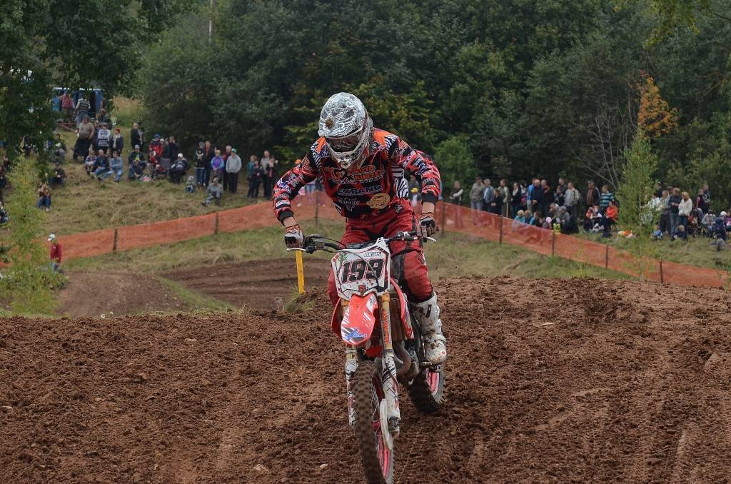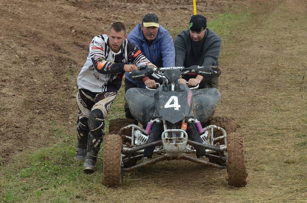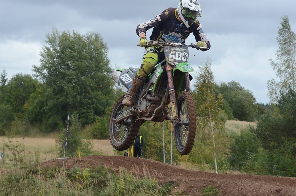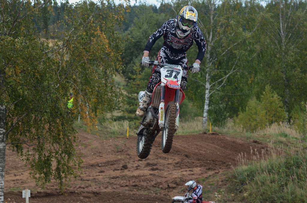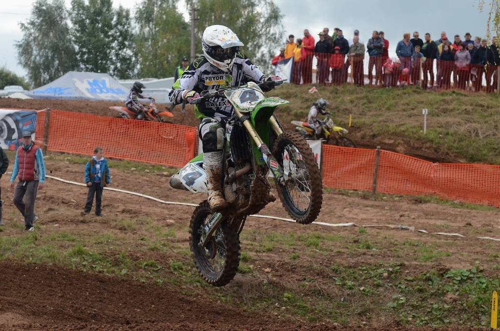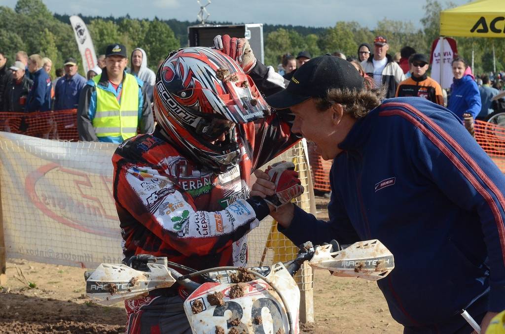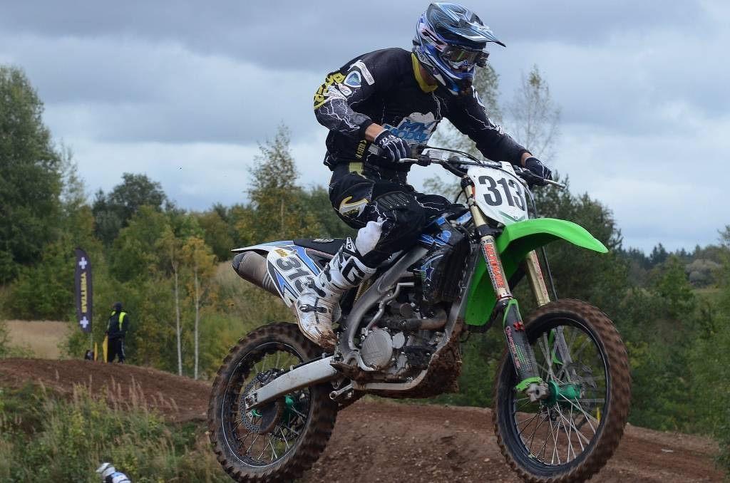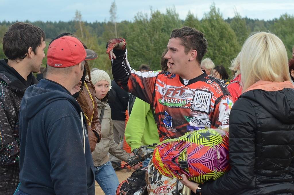 Bildes no motokrosa sacensību “Battery Superkauss 2012” pēdējā posma 16. septembrī Bērzu mototrasē Saldū, kur dramatisks bija “MX Pro” klases otrais brauciens.