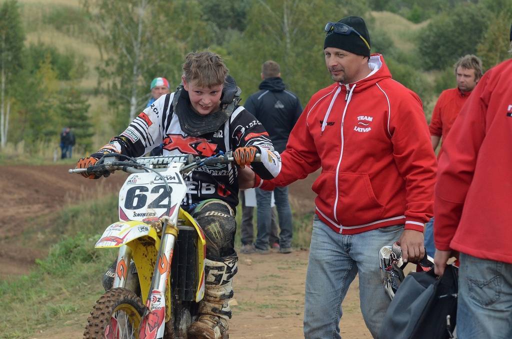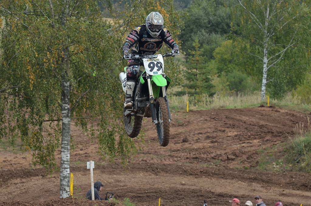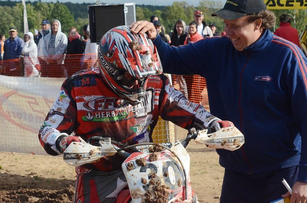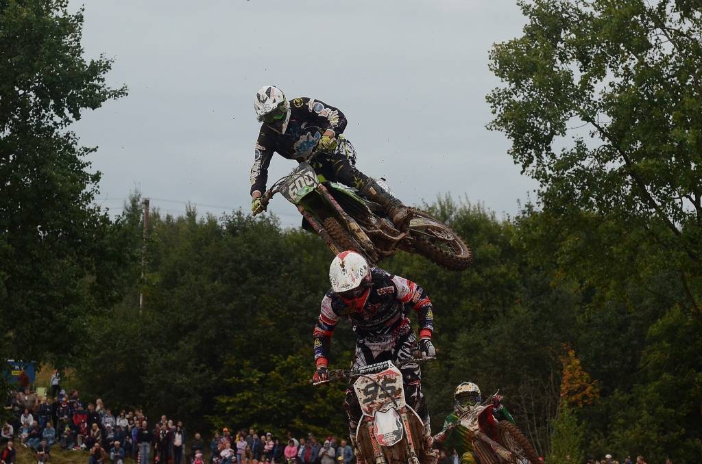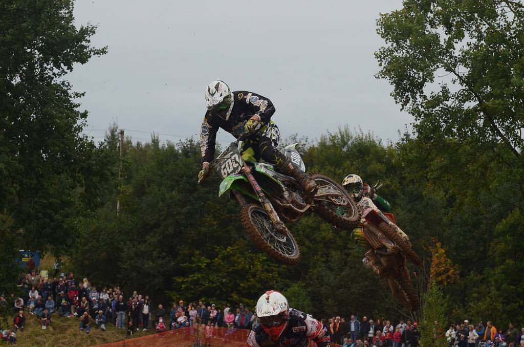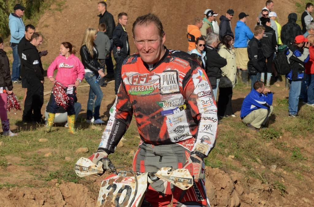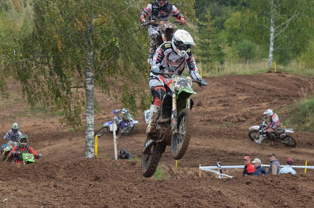 Bildes no motokrosa sacensību “Battery Superkauss 2012” pēdējā posma 16. septembrī Bērzu mototrasē Saldū, kur dramatisks bija “MX Pro” klases otrais brauciens.