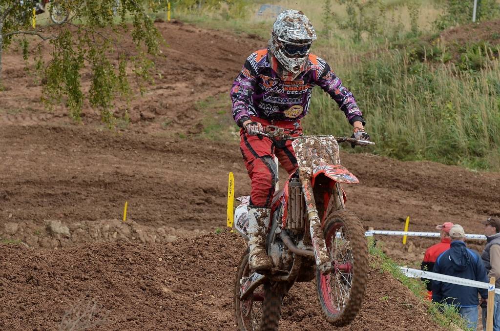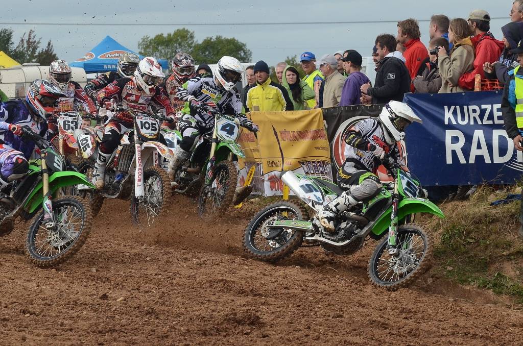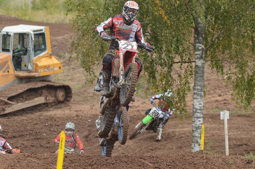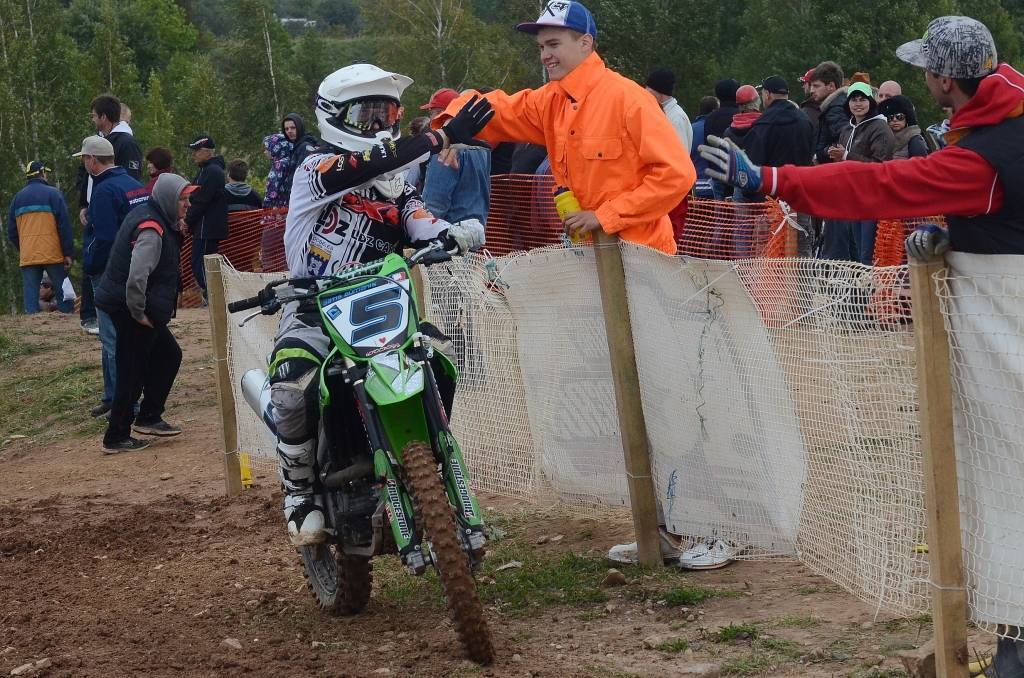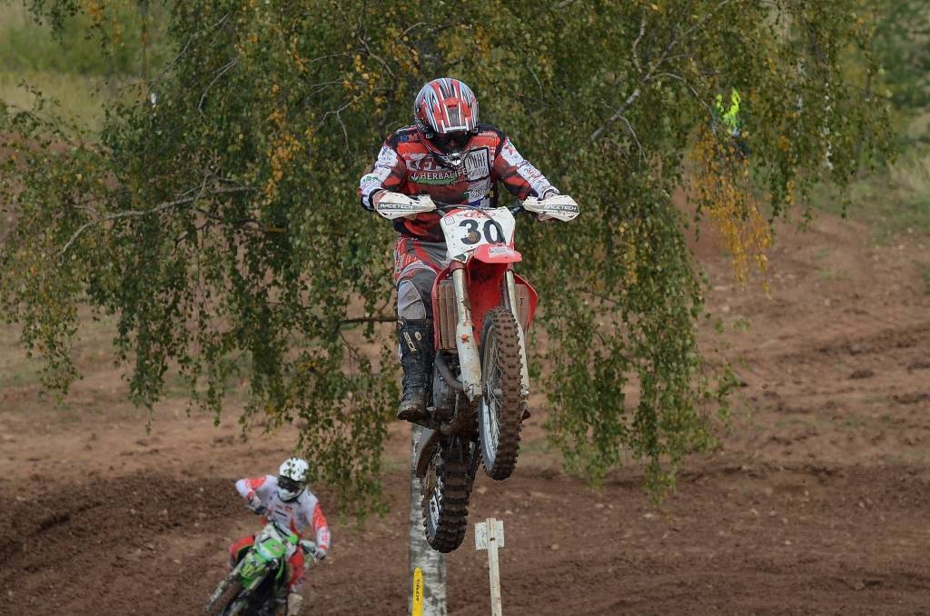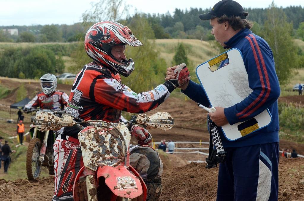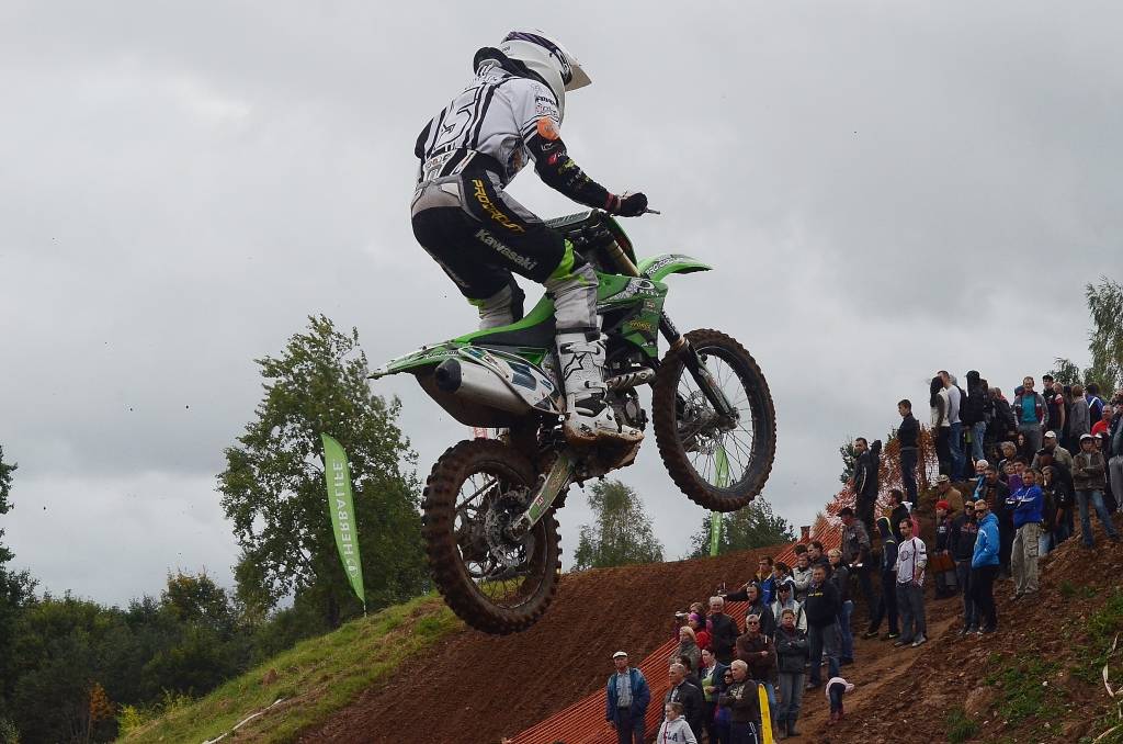 Bildes no motokrosa sacensību “Battery Superkauss 2012” pēdējā posma 16. septembrī Bērzu mototrasē Saldū, kur dramatisks bija “MX Pro” klases otrais brauciens.