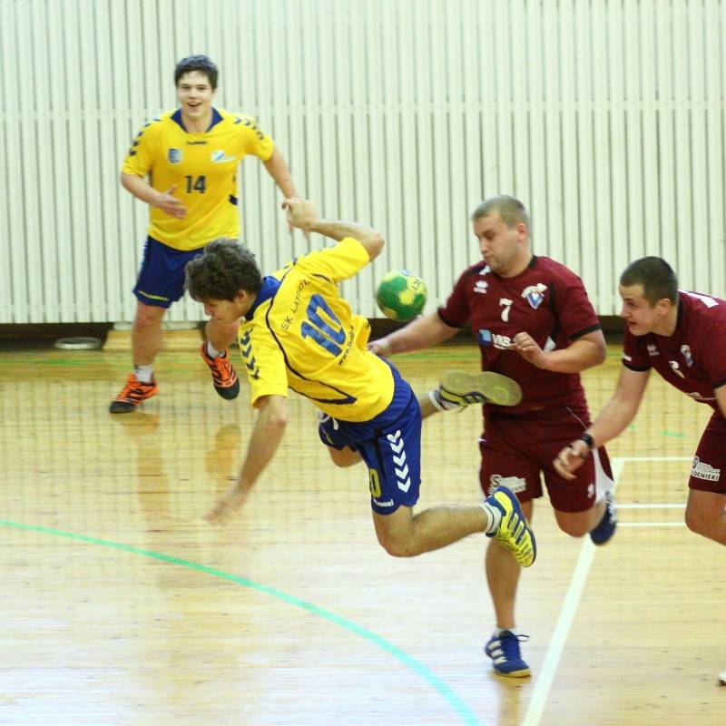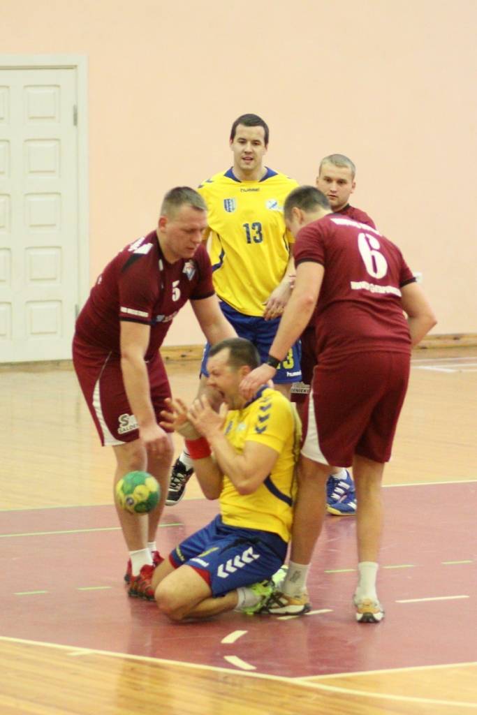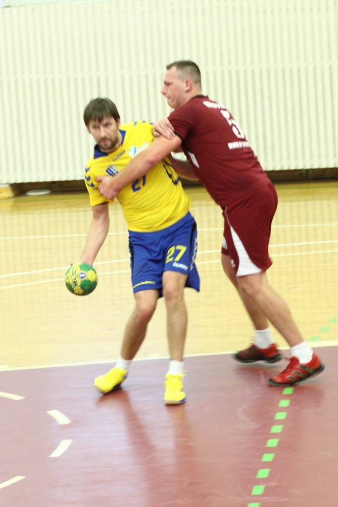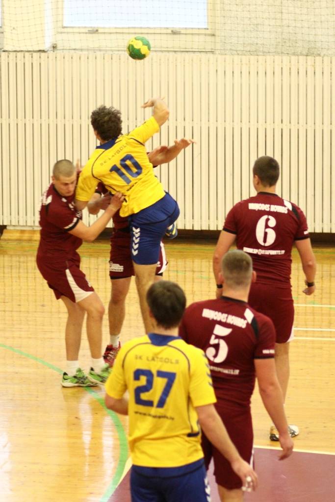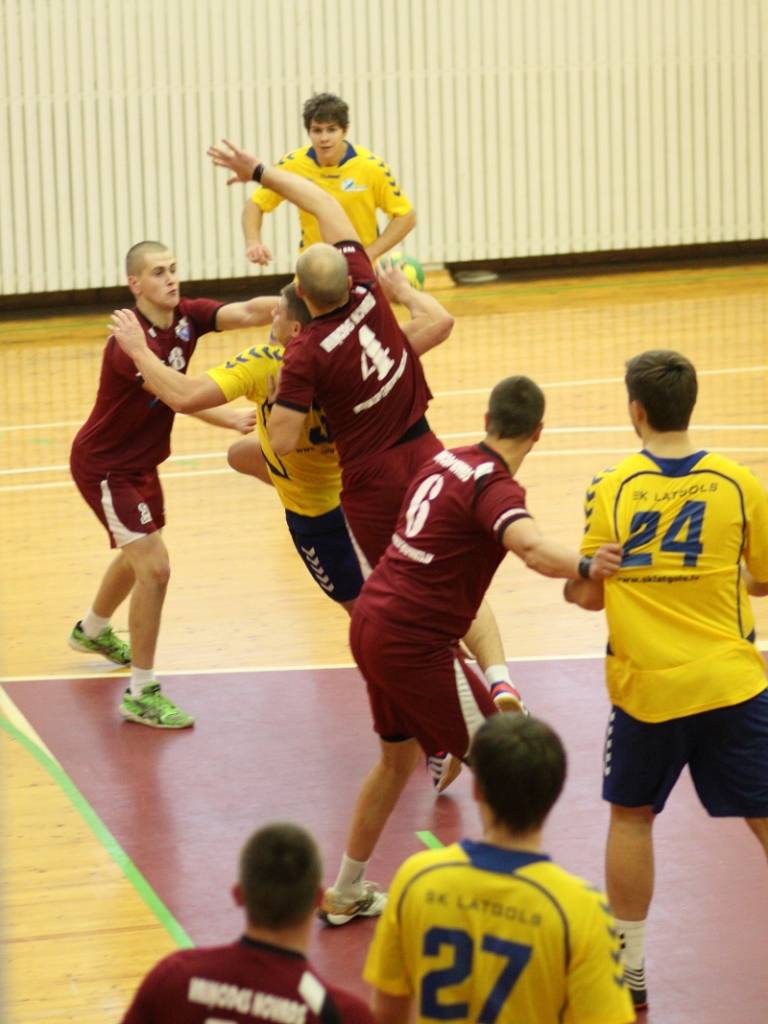 “Vaiņode” vadībā bija līdz pat 13. minūtei (8:7), bet pēc tam vadības grožus uzņēmās “Latgols”, kas pirmo puslaiku uzvarēja ar 17:13. Pirmā puslaika izskaņā viesi pat ieguva sešu vārtu pārsvaru – 16:10.