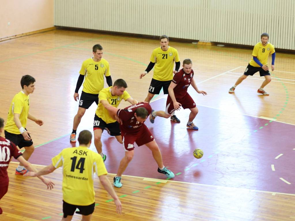 PAPILDINĀTS AR BILDĒM. “Vaiņodes” handbolisti svētdien, 22. februārī, savā laukumā Latvijas virslīgas handbola čempionāta spēlē ar 28:27 (17:13) uzvarēja komandu “ASK/LU”.