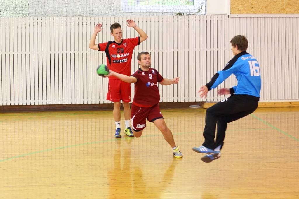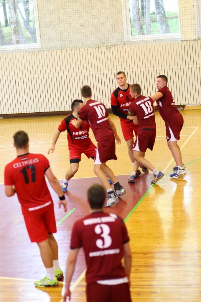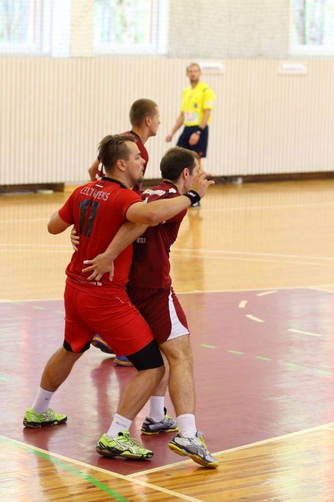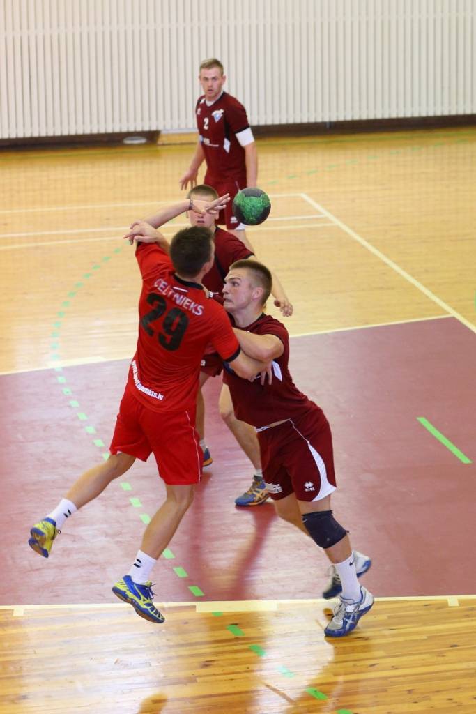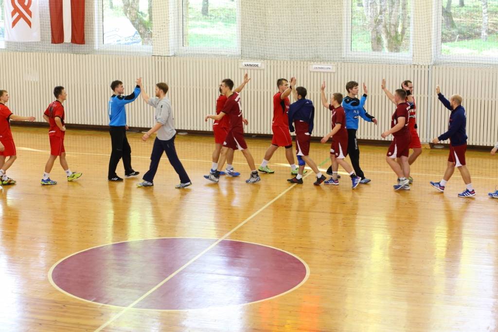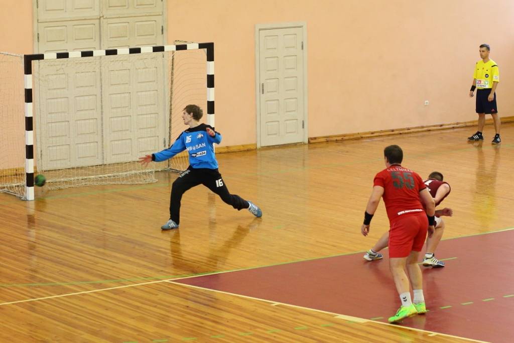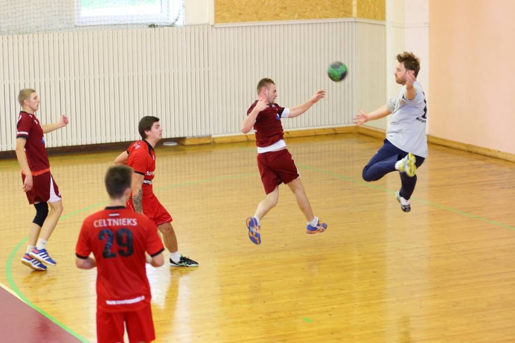 PAPILDINĀTS AR BILDĒM. Pie pirmā panākuma jaunajā Latvijas vīriešu handbola čempionāta sezonā svētdien tikusi “Vaiņode”, kas savā laukumā ar 27:22 (11:13) uzvarēja “Celtnieks”/LSPA klubu.