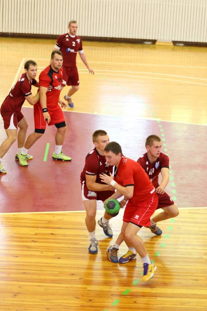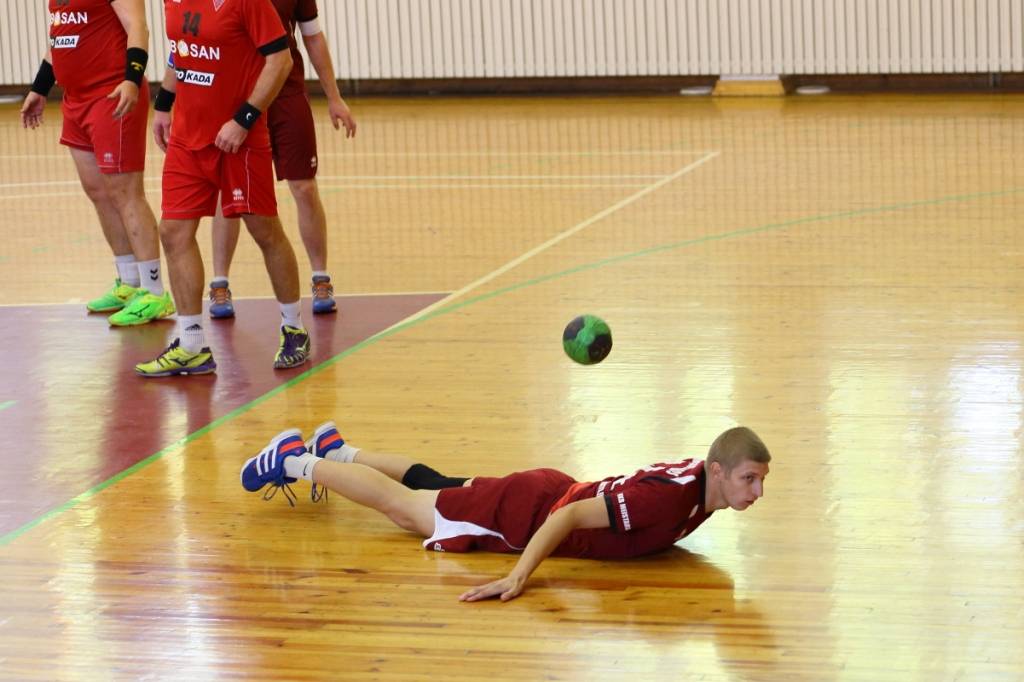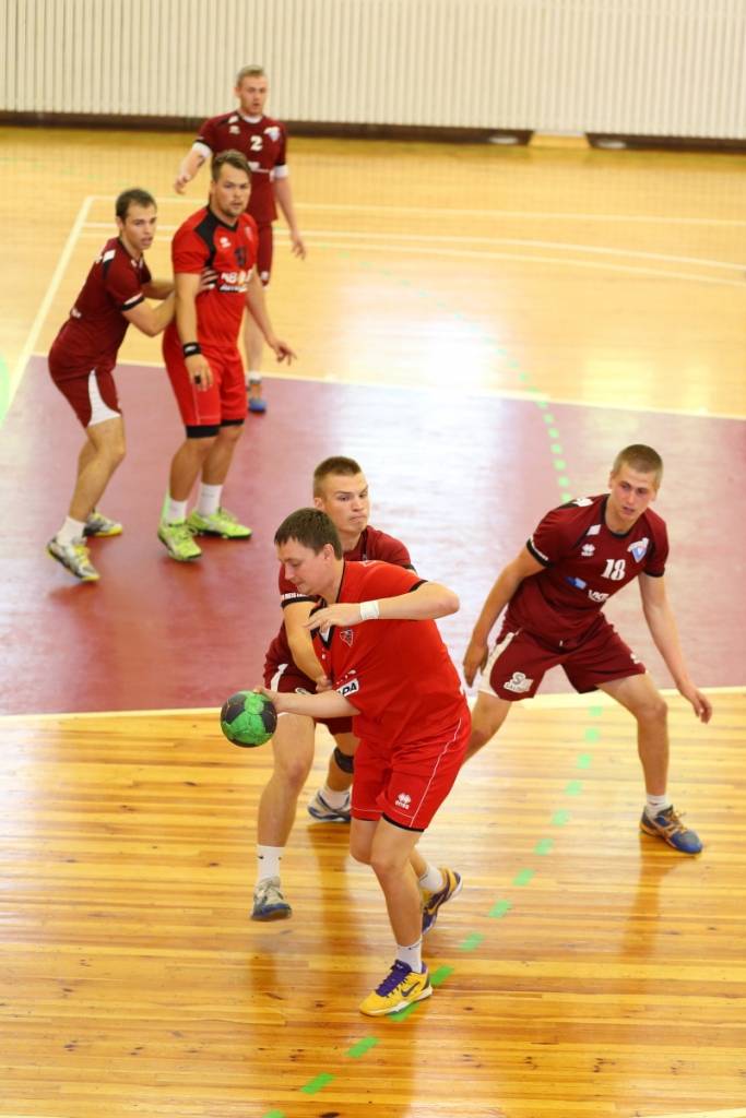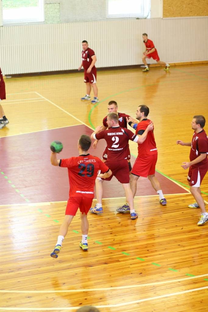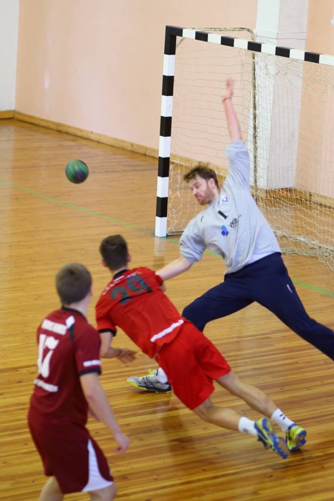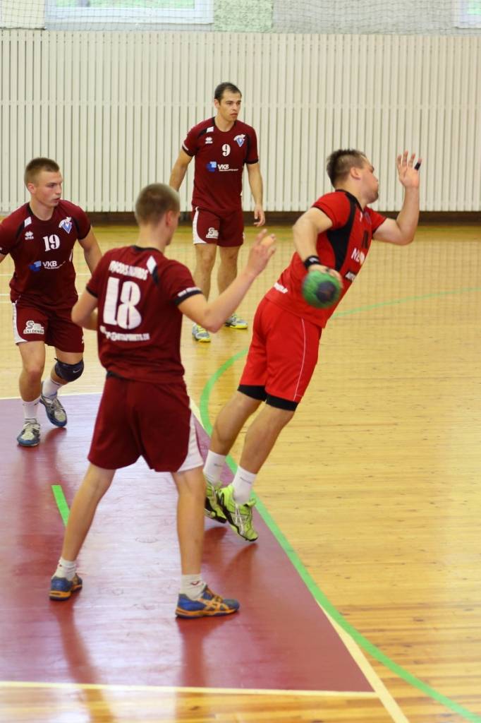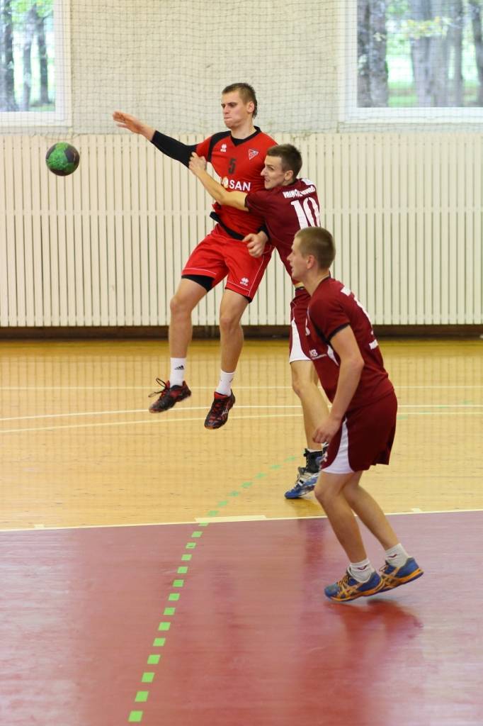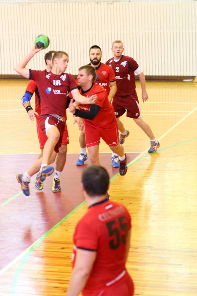 PAPILDINĀTS AR BILDĒM. Pie pirmā panākuma jaunajā Latvijas vīriešu handbola čempionāta sezonā svētdien tikusi “Vaiņode”, kas savā laukumā ar 27:22 (11:13) uzvarēja “Celtnieks”/LSPA klubu.