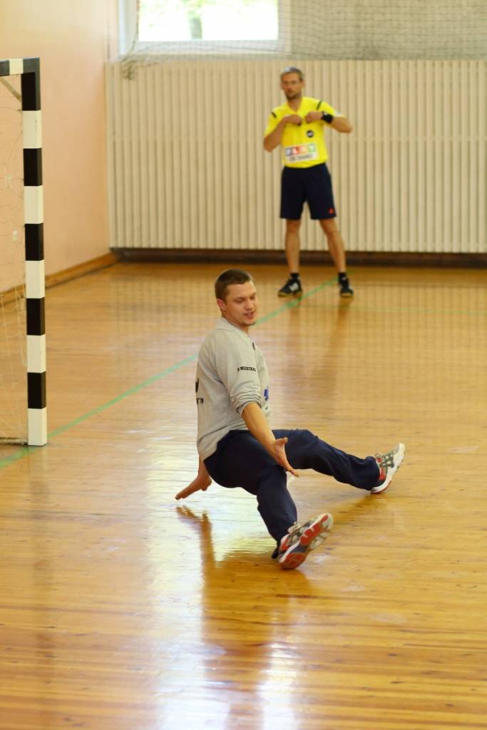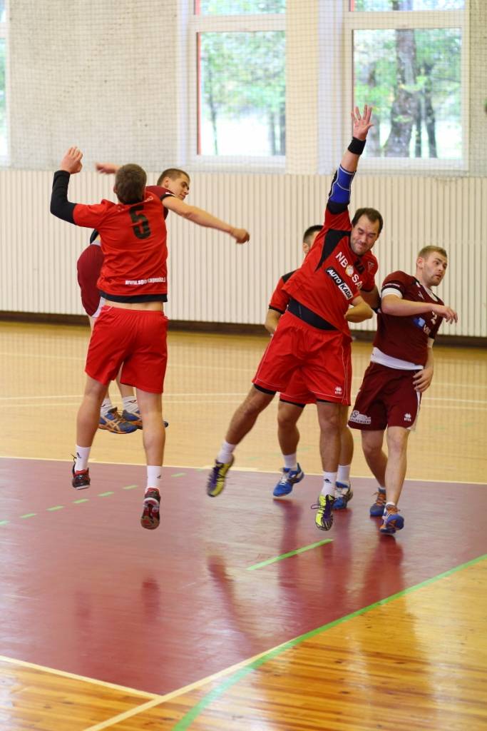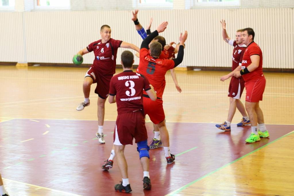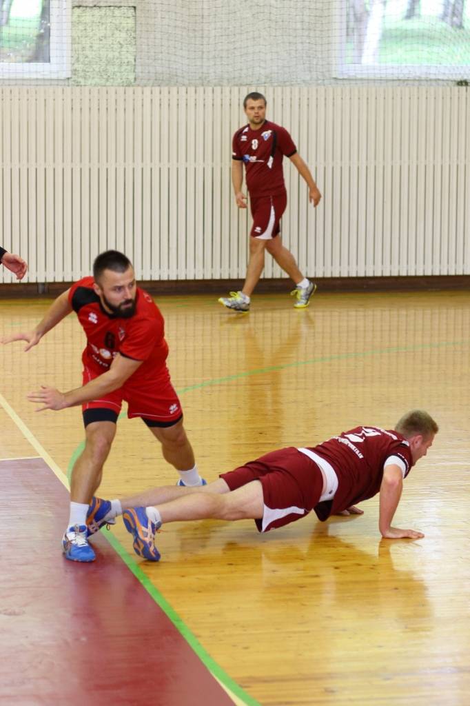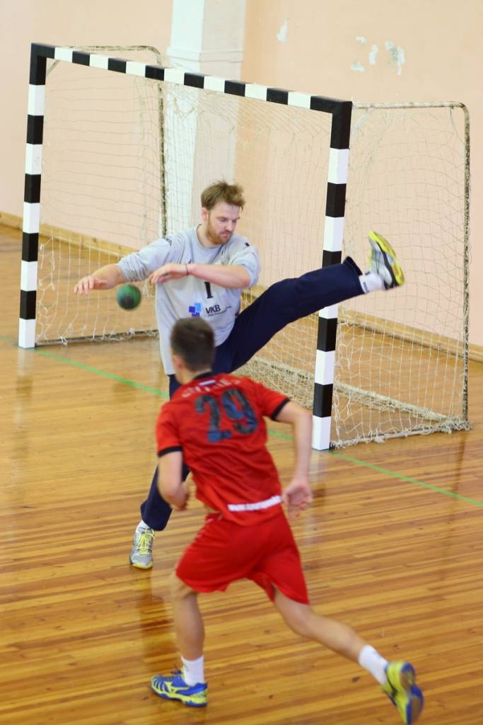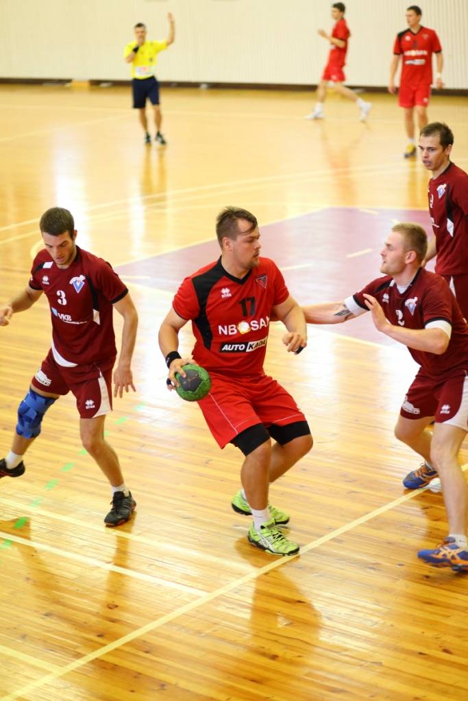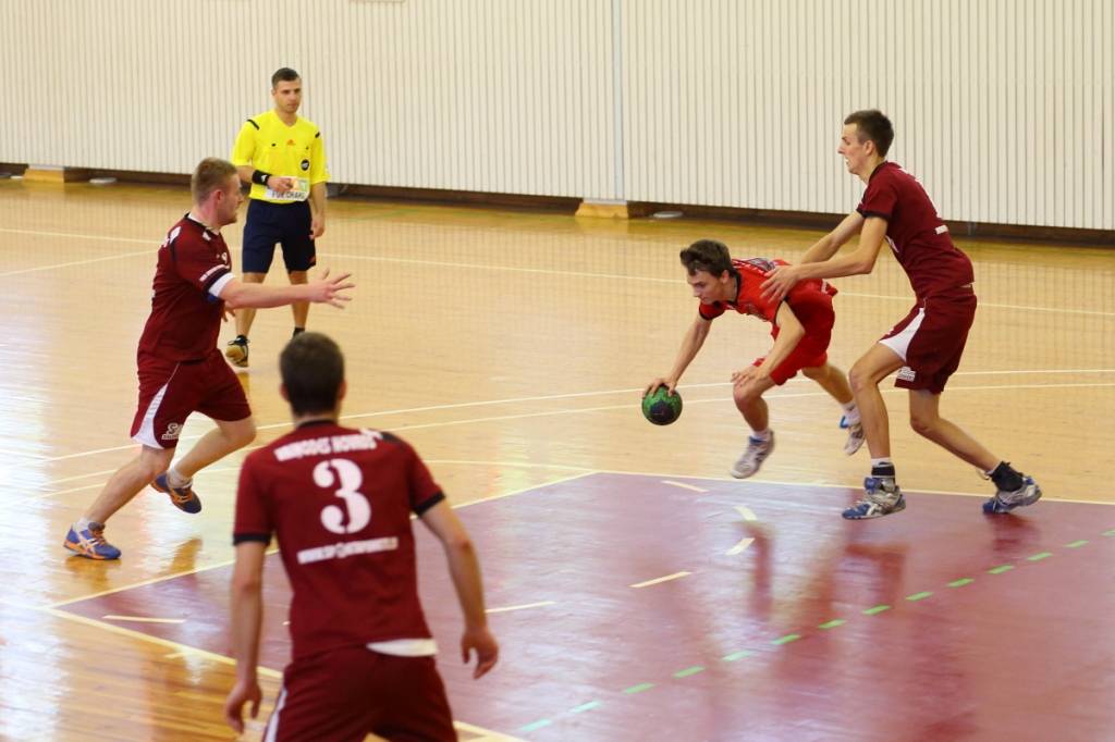 PAPILDINĀTS AR BILDĒM. Pie pirmā panākuma jaunajā Latvijas vīriešu handbola čempionāta sezonā svētdien tikusi “Vaiņode”, kas savā laukumā ar 27:22 (11:13) uzvarēja “Celtnieks”/LSPA klubu.