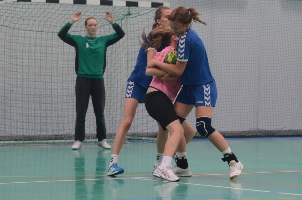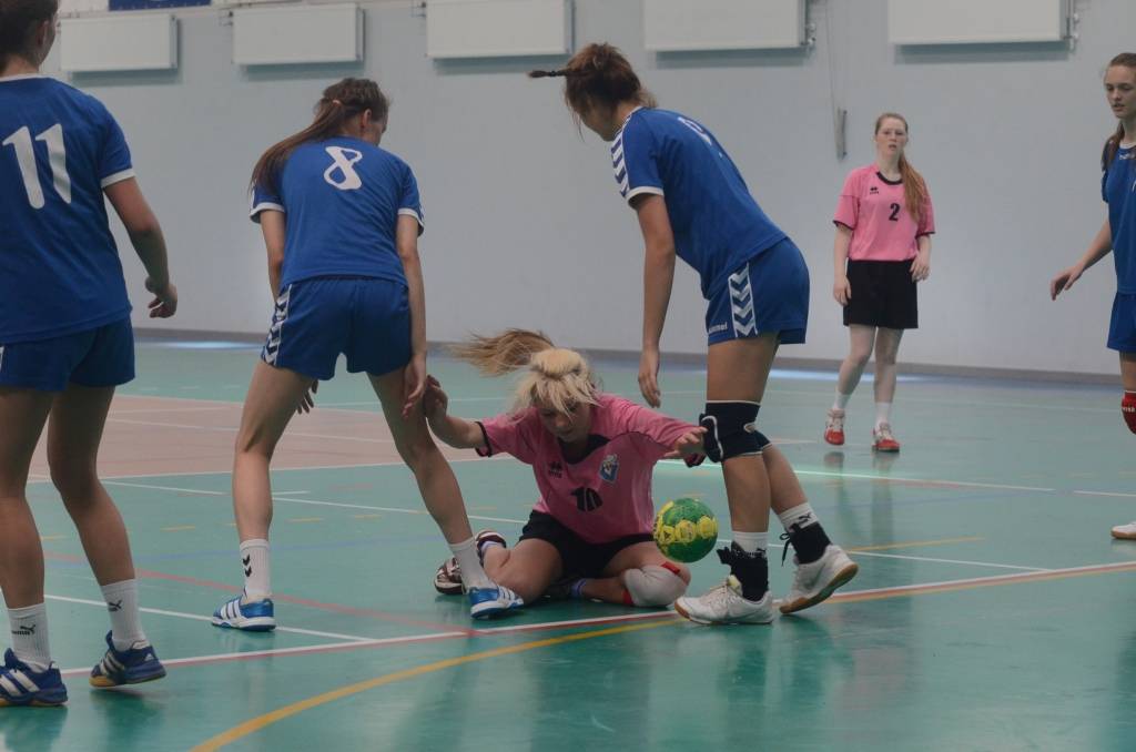 FOTO: Vaiņodes novada handbolistes Latvijas jaunatnes Olimpiādē gandrīz sarūpē sensāciju