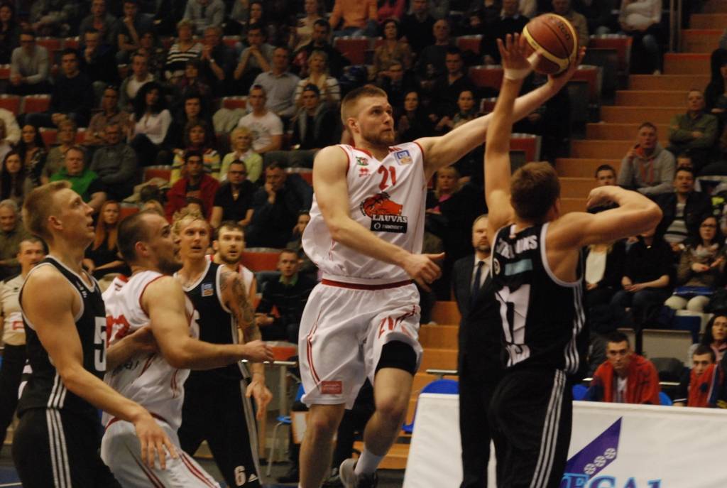 Pusfināla sērijas ceturtajā mačā “VEF Rīga” izbraukumā piektdien pārspēja pretiniekus ar 92:69 (21:22, 29:16, 21:15, 21:16), sērijā līdz trim uzvarām triumfējot ar 3-1.