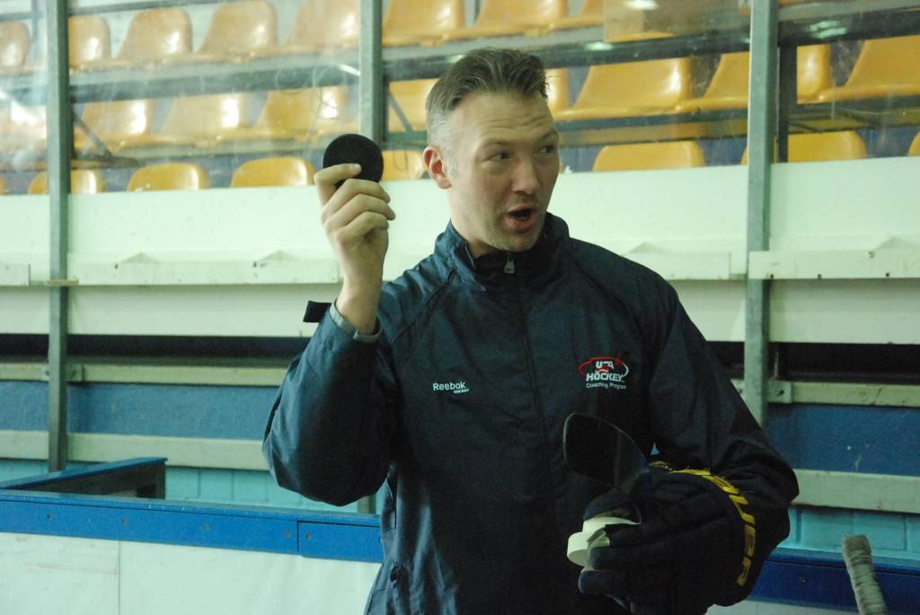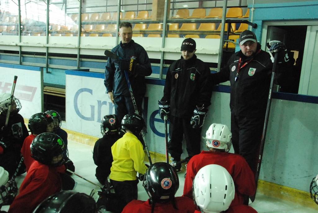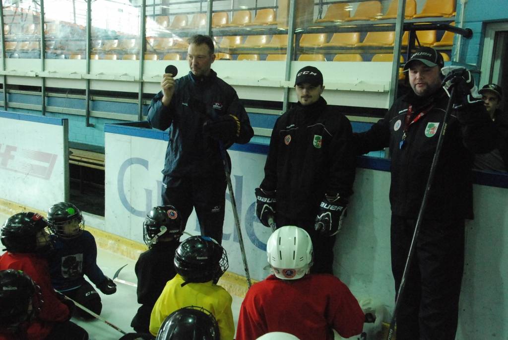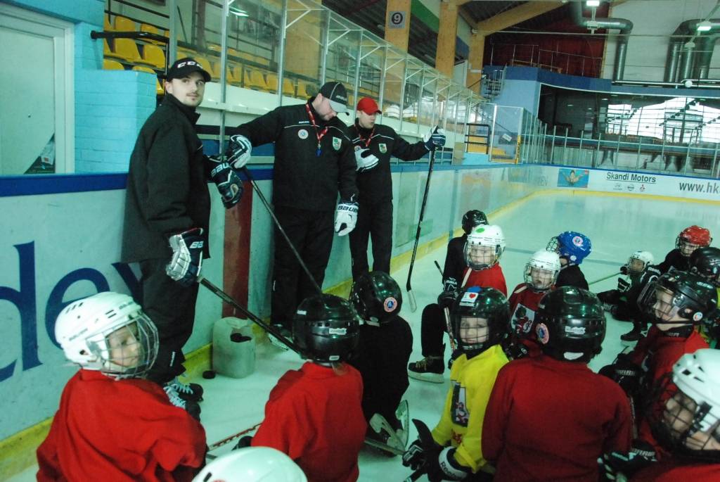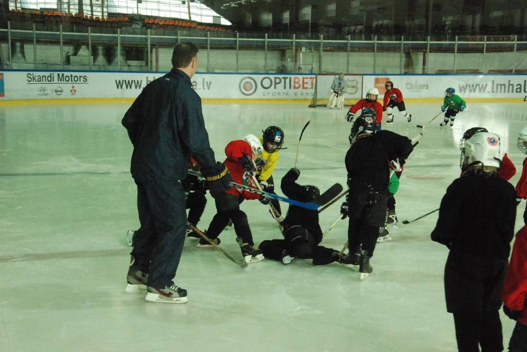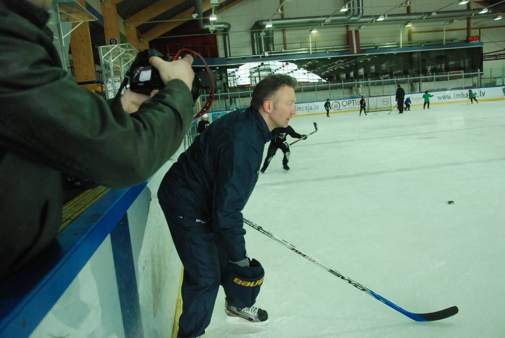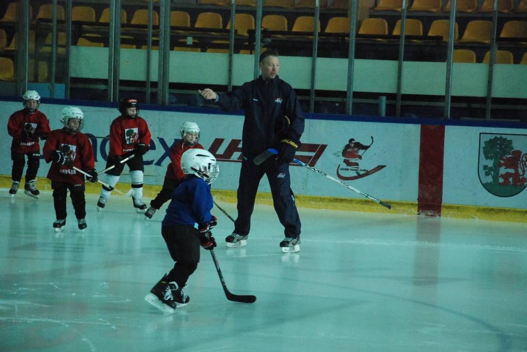 Portāls novēroja, ka mazie hokejisti savu treneru vadībā pirms treniņa atkārtoja angļu valodas zināšanas, lai nodarbībā varētu saprasties ar ciemiņu.