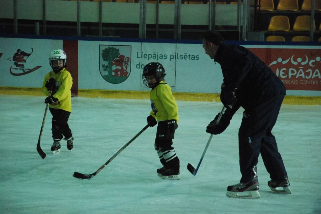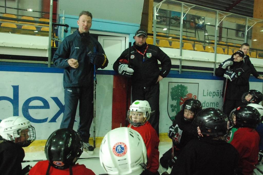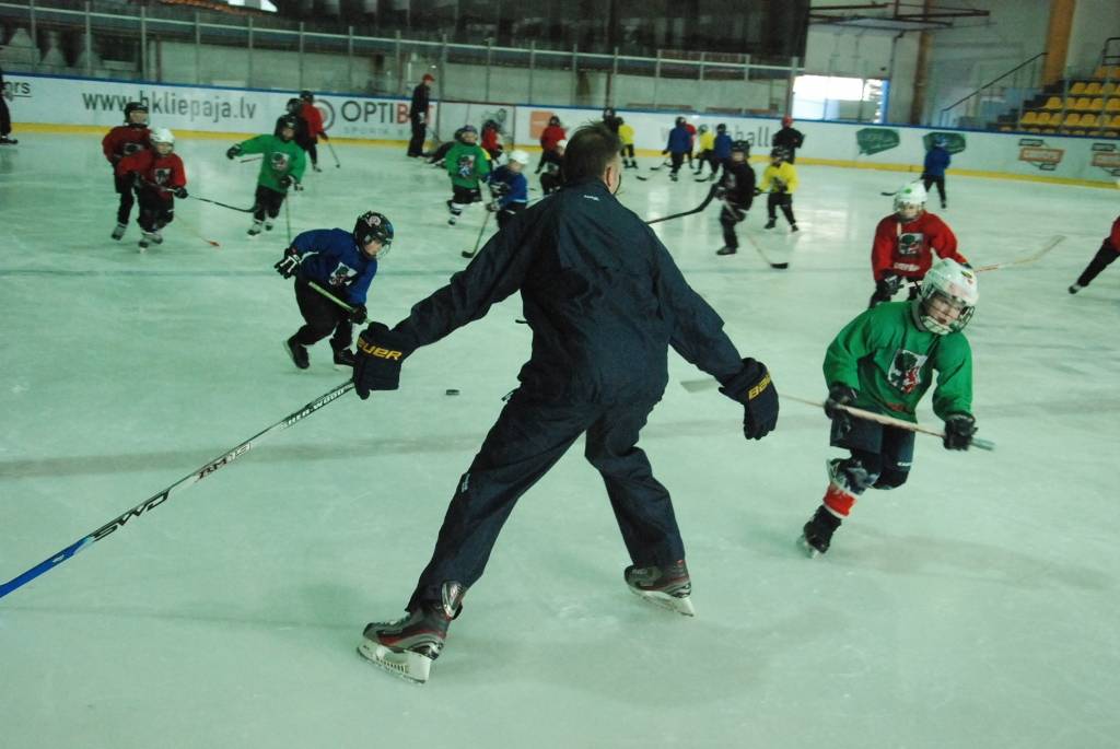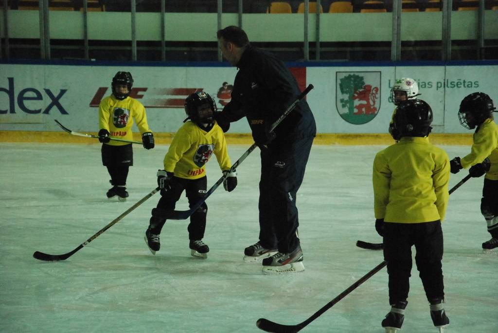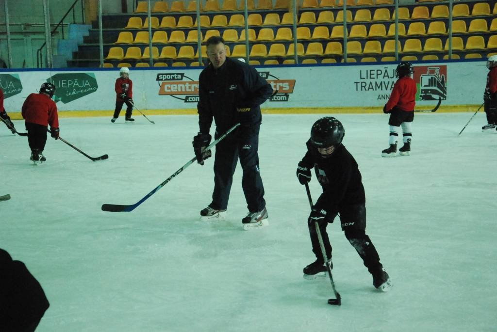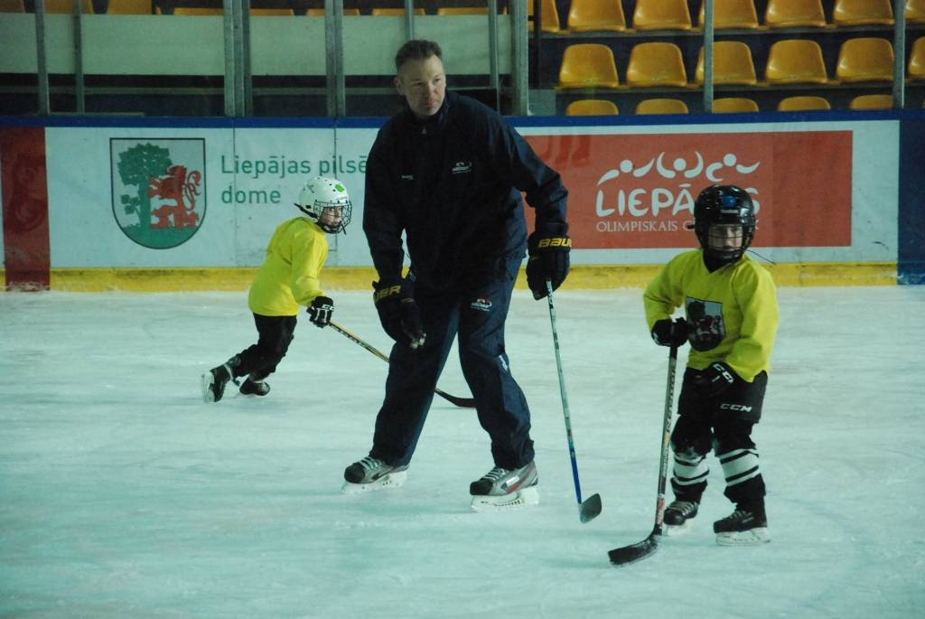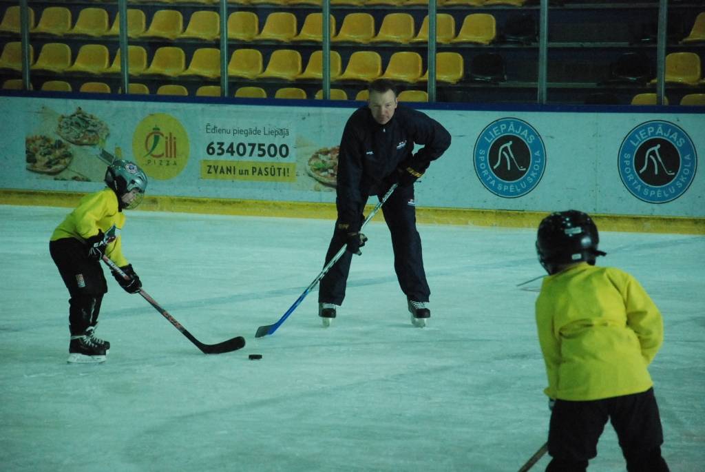 PAPILDINĀTS AR VIDEO. Pirmdien, 16. martā, Liepājas ledushallē Liepājas Sporta spēļu skolas jaunajiem hokejistiem vairākās vecuma grupās paraugtreniņus vadīja latviešu izcelsmes amerikāņu hokeja treneris Āris Brīmanis, kurš savā karjerā aizvadījis vairāk nekā 100 spēles Nacionālajā hokeja līgā.