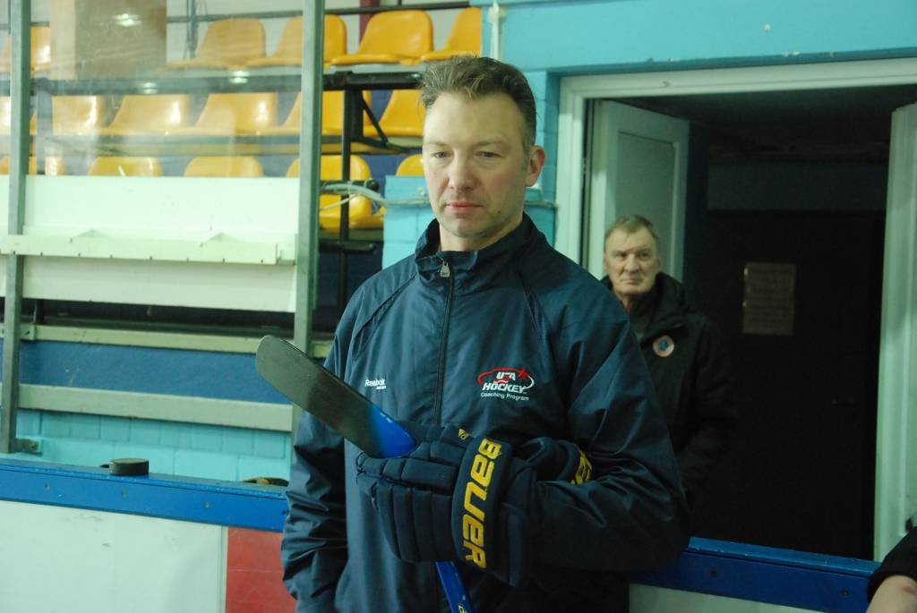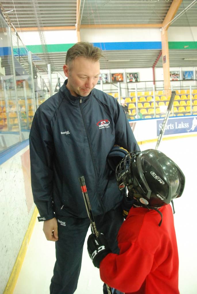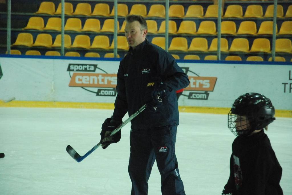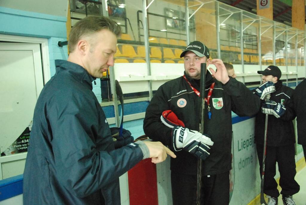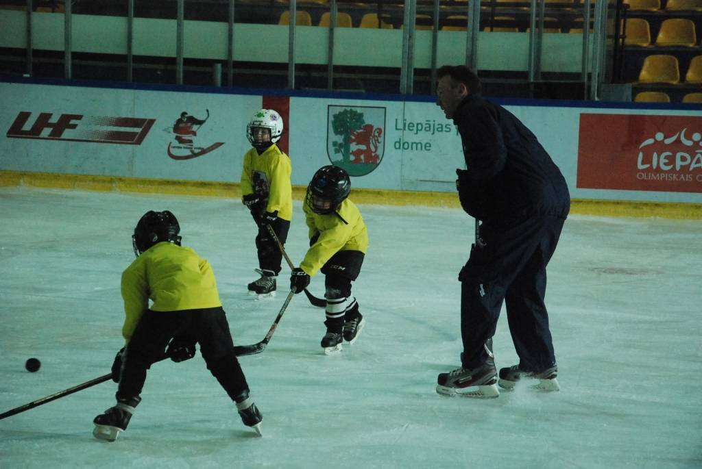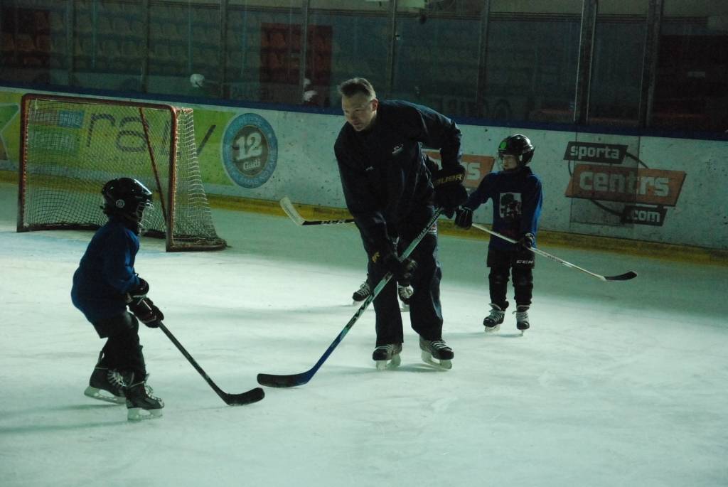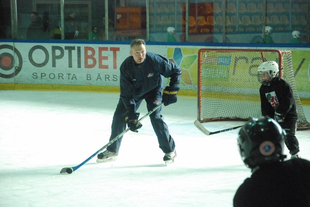 PAPILDINĀTS AR VIDEO. Pirmdien, 16. martā, Liepājas ledushallē Liepājas Sporta spēļu skolas jaunajiem hokejistiem vairākās vecuma grupās paraugtreniņus vadīja latviešu izcelsmes amerikāņu hokeja treneris Āris Brīmanis, kurš savā karjerā aizvadījis vairāk nekā 100 spēles Nacionālajā hokeja līgā.