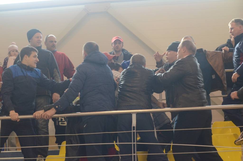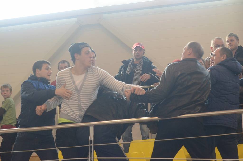 Otrā puslaika vidū “Classic” izvirzījās vadībā ar 2:1. Mačam tuvojoties izskaņai, spriedze pieauga. Pirmspēdējā minūtē nervi neizturēja arī skatītājiem tribīnēs un sākās kautiņš. Video no kautiņa beigām skatīt šeit. Minūti un 26 sekundes pirms mača beigām “Grobiņa” rezultātu izlīdzināja – 2:2. Video skatīt šeit. Nepilnas 20 sekundes vēlāk Ģirts Džeriņš jau panāca 3:2 “Grobiņas” labā.