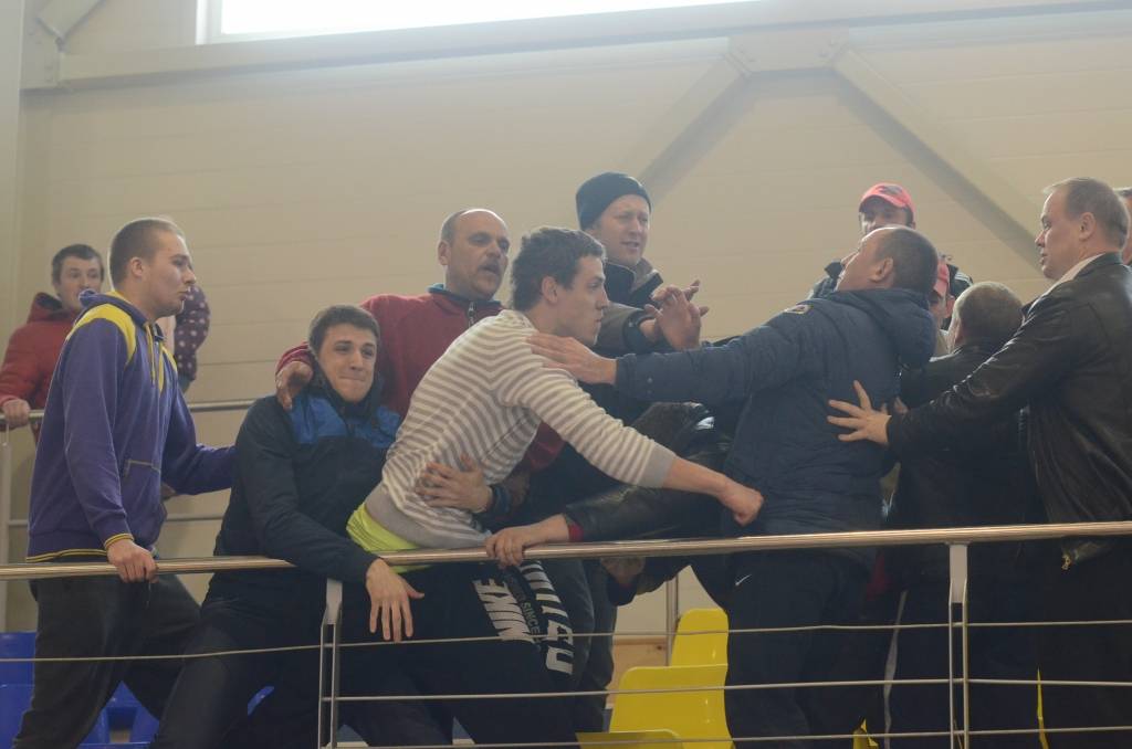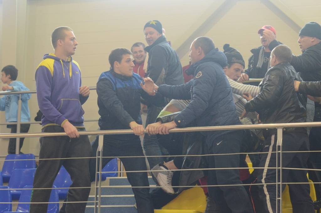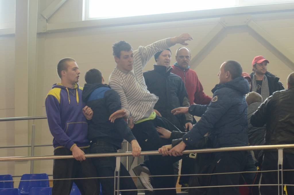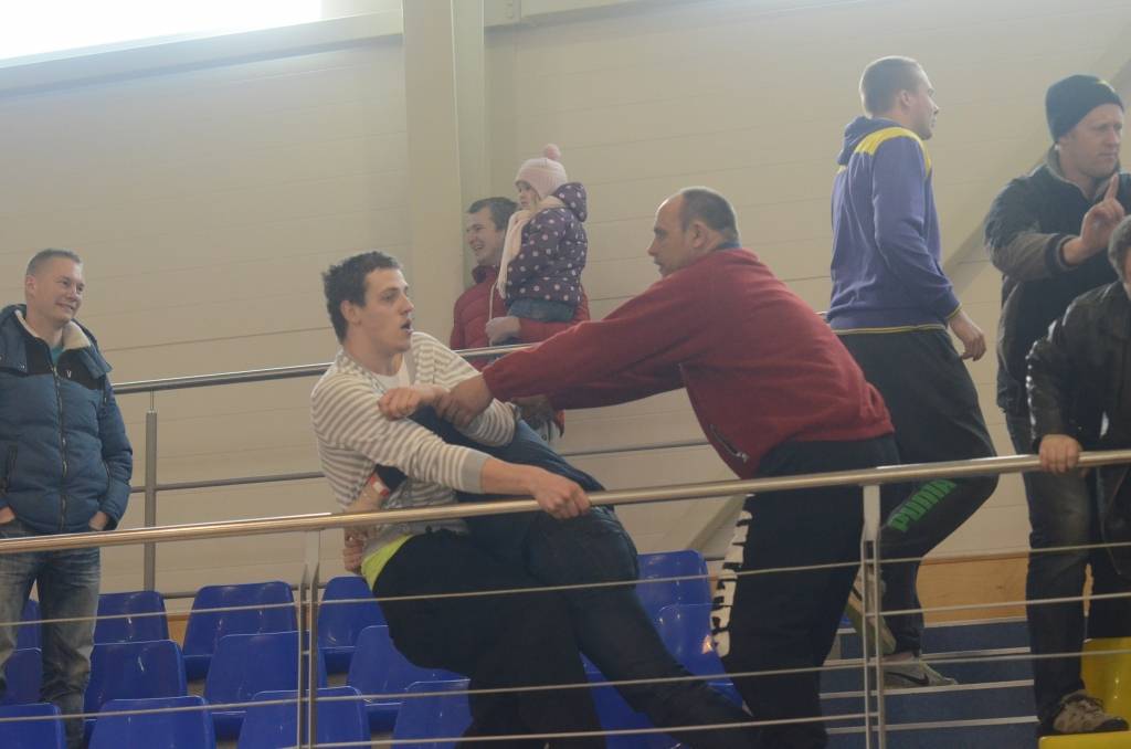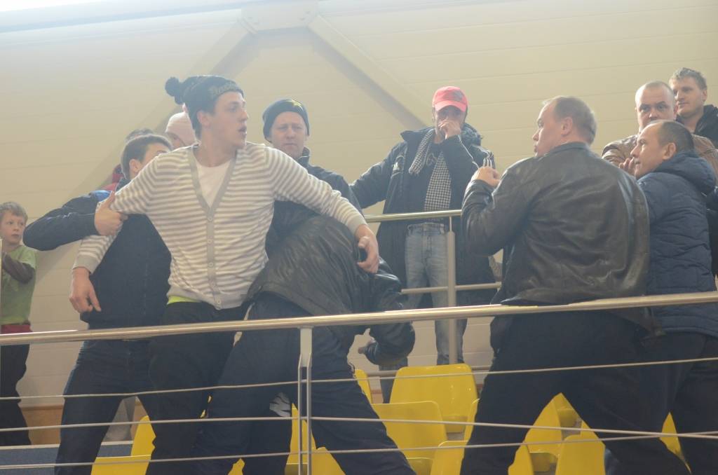 FOTO.VIDEO: "Classic" iegūst Kurzemes kausu, Grobiņas Sporta centra tribīnēs izceļas kautiņš