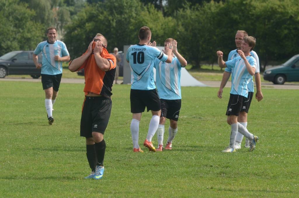Mača sākumā grobiņnieks Ariks Stankus neiesita “pendeli”. Bumba trāpīja pa vārtu stabu. Pēc pirmā puslaika rezultāts bija neizšķirts – 0:0.