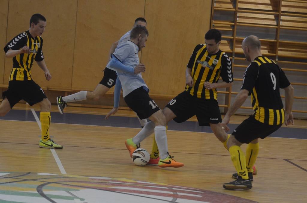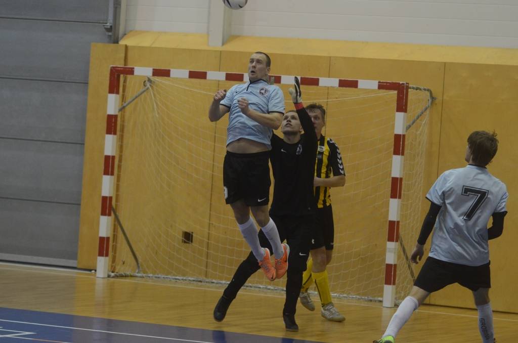 PAPILDINĀTS AR VIDEO. “Grobiņas SC” futbolisti svētdien, 18. janvārī, Grobiņas Sporta centrā Latvijas kausa izcīņas telpu futbolā pirmās kārtas mačā aizraujošā cīņā pagarinājumā ar 4:5 atzina “Liepājas papīra” parākumu.