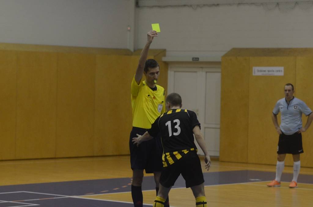 Mača 28. minūtē “Liepājas papīrs” panāca neizšķirtu pēc R. Sāmieša precīzā sitiena. Piecas minūtes pirms otrā puslaika beigām Rinalds Stankus atkal vadībā izvirzīja grobiņniekus. Mača beigās mājiniekiem jau bija piezīmju norma un pie nākamā pārkāpuma R. Sāmietis ar soda sitienu rezultātu izlīdzināja. Spēles pamatlaiks noslēdzās neizšķirti – 4:4.