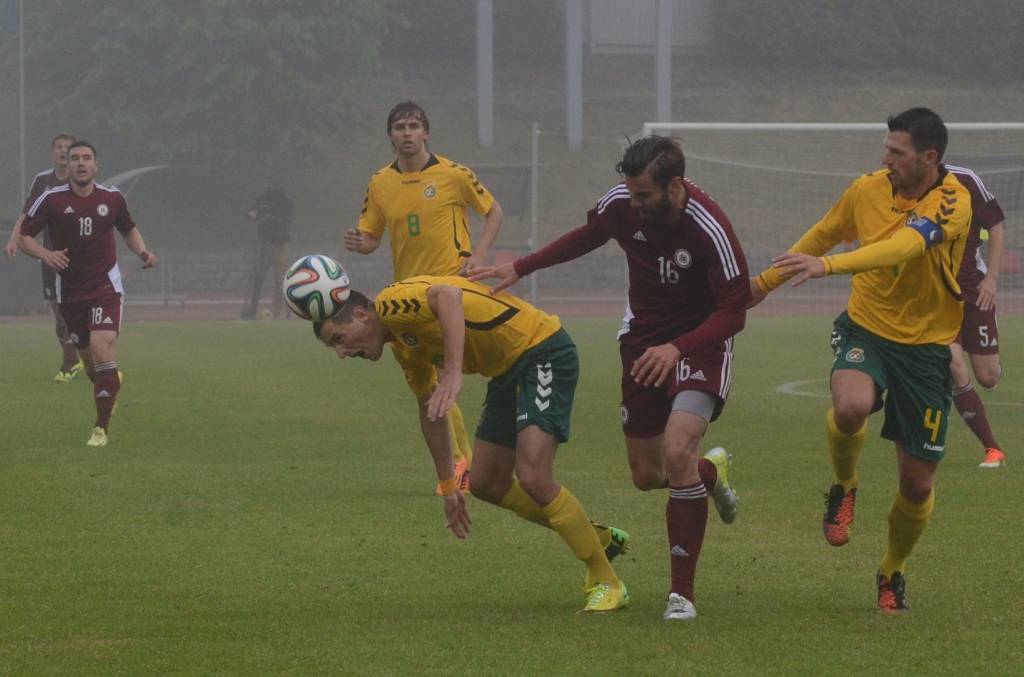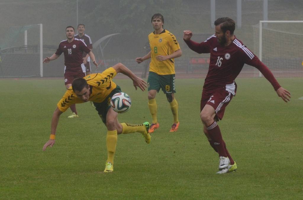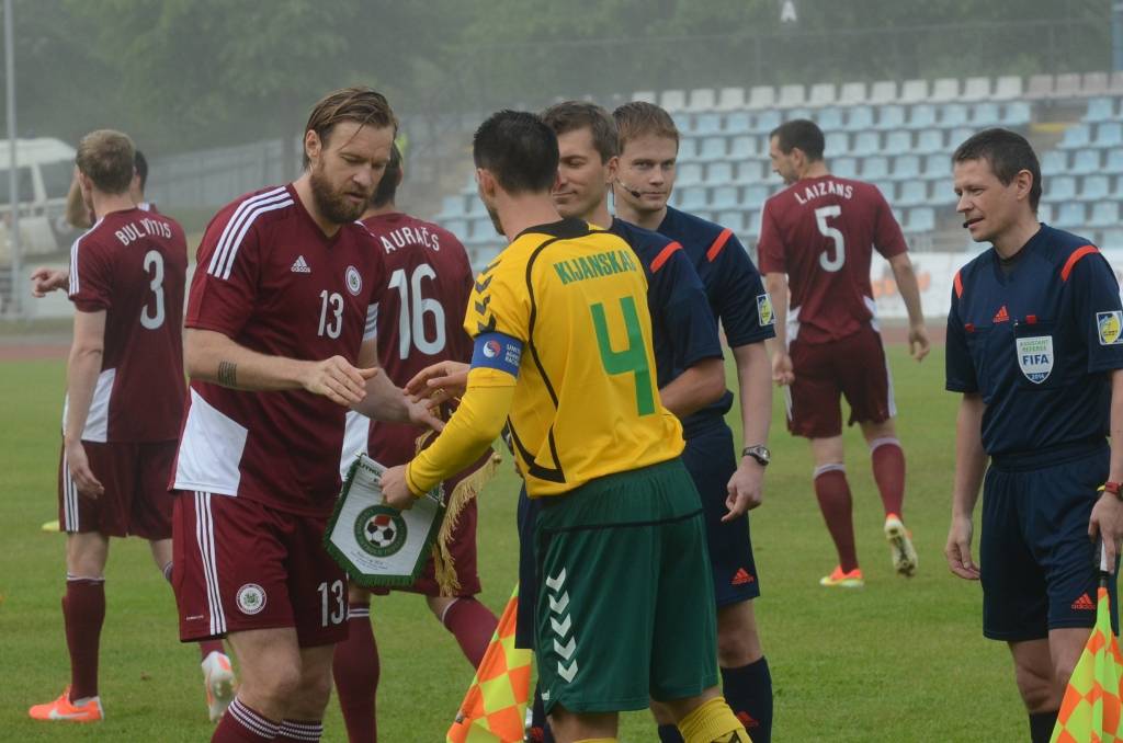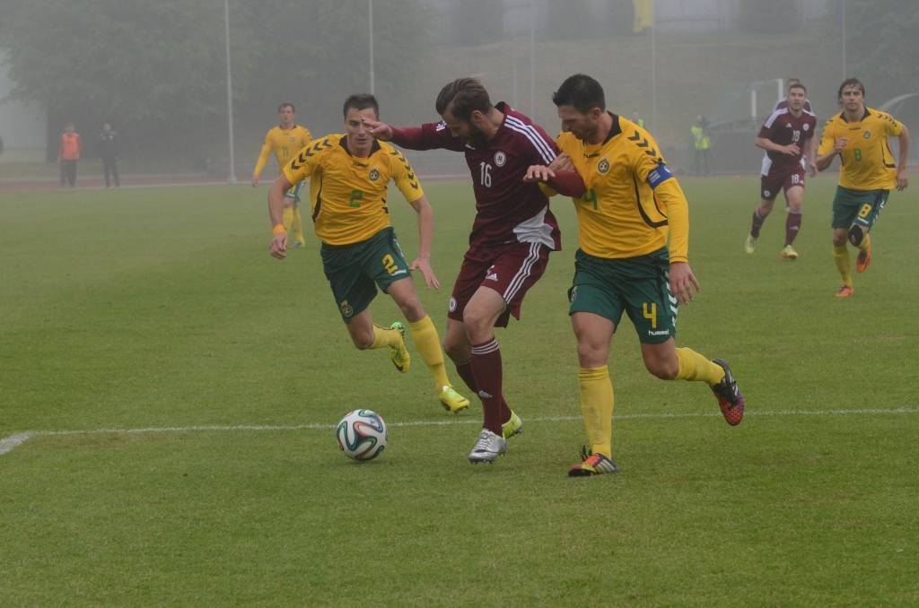 Tikmēr Lietuvas izlasē bija iekļauti futbolisti no klubiem Lietuvā, Izraēlā, Krievijā, Dānijā, Rumānijā, Čehijā, Itālijā, Vācijā, Baltkrievijā, Ukrainā, Azerbaidžānā, Anglijā un arī Latvijā.