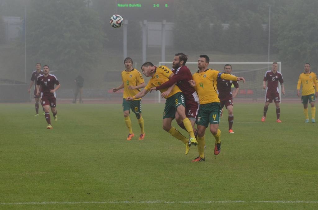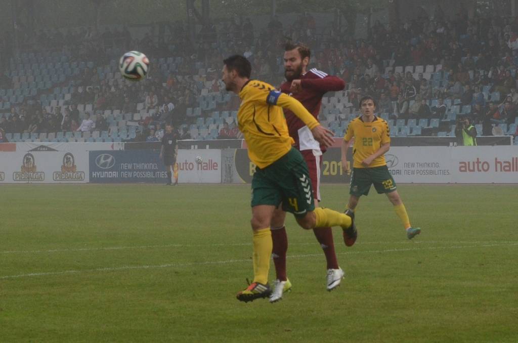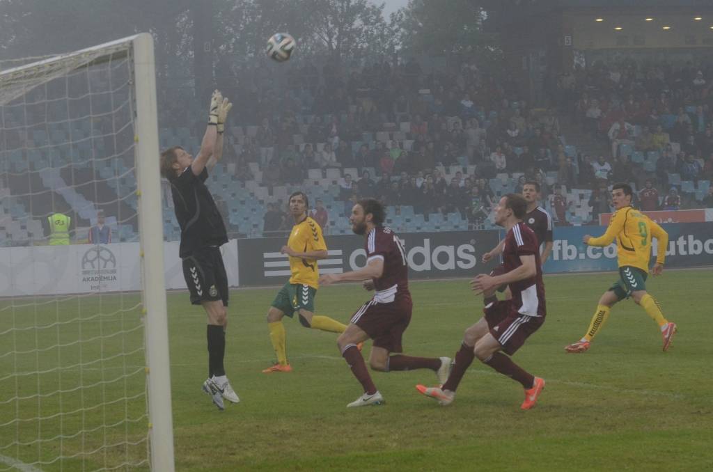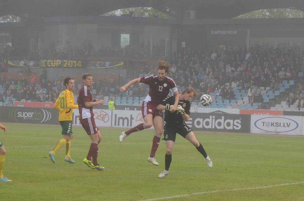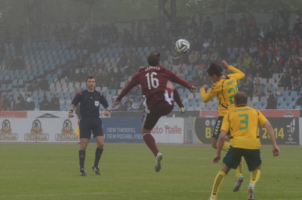 Mačs starp abām vienībām sākās itin mierīgā gaisotnē, taču jau septītajā minūtē pēc stūra sitiena izspēles nesaprašanos Lietuvas izlases soda laukumā izmantoja Bulvītis, kurš raidīja bumbu vārtos.