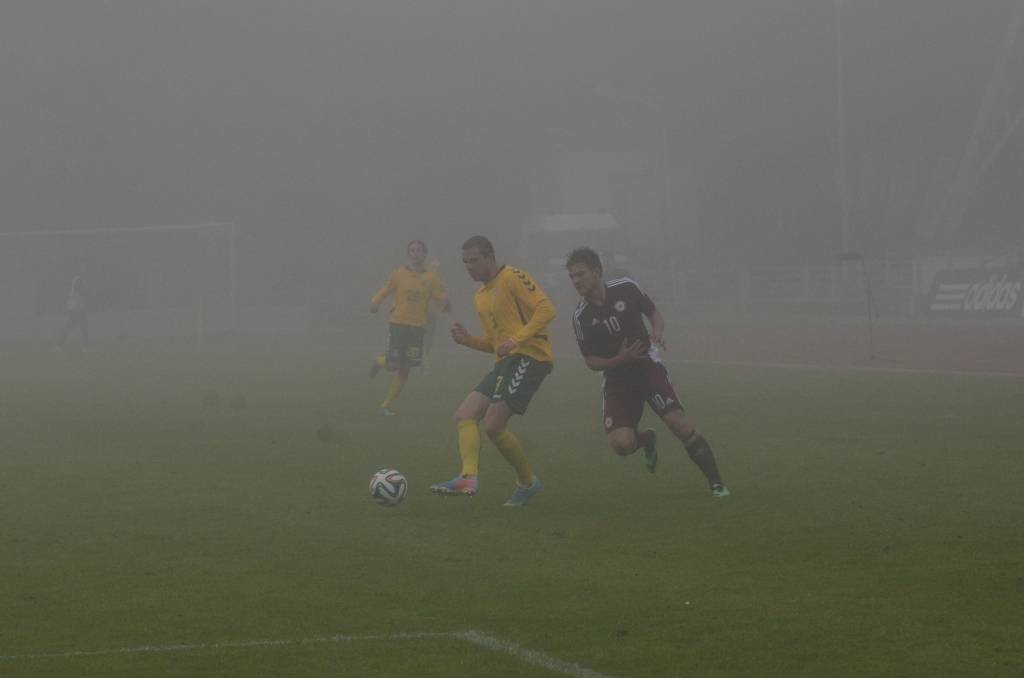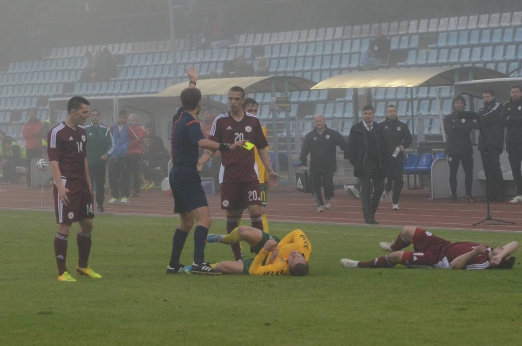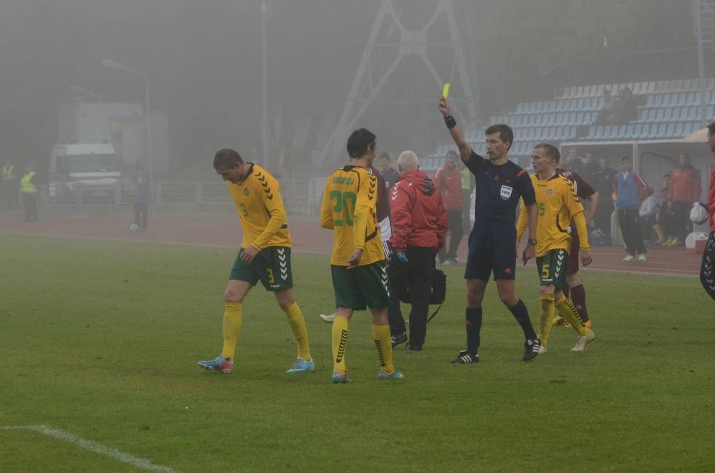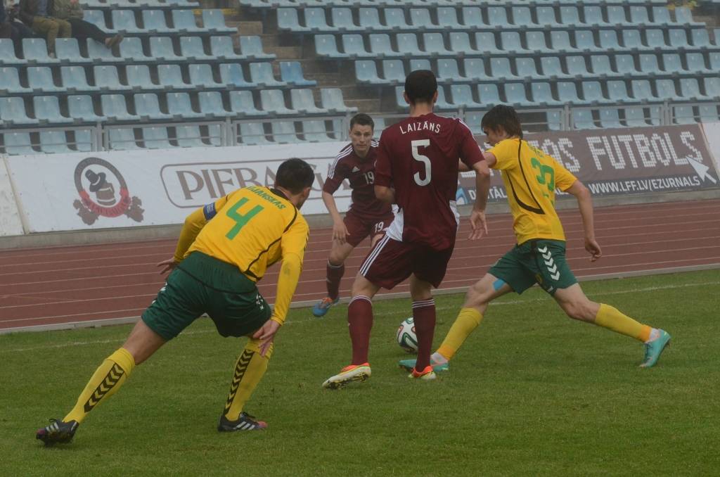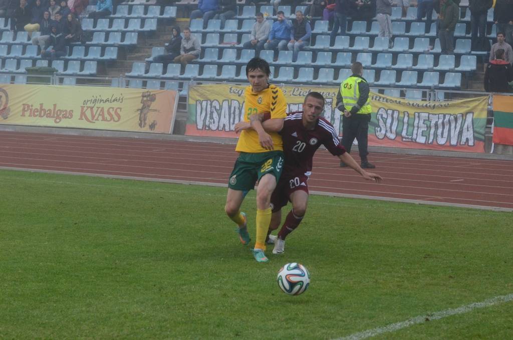 Mačs starp abām vienībām sākās itin mierīgā gaisotnē, taču jau septītajā minūtē pēc stūra sitiena izspēles nesaprašanos Lietuvas izlases soda laukumā izmantoja Bulvītis, kurš raidīja bumbu vārtos.