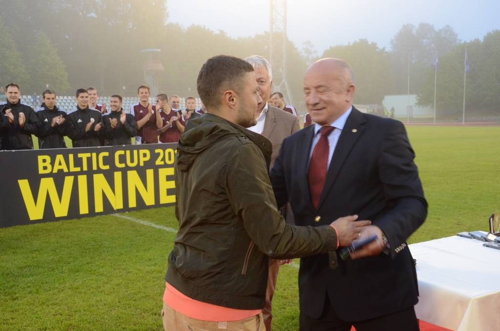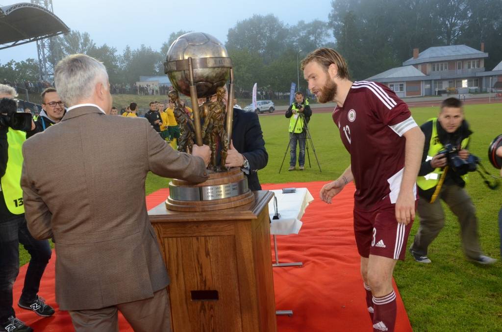 PAPILDINĀTS AR VIDEO. Latvijas futbola izlase sestdien Liepājā ar rezultātu 1:0 (1:0) uzvarēja Lietuvu Baltijas kausa izcīņas finālspēlē, nosargājot pirms diviem gadiem iegūto trofeju.