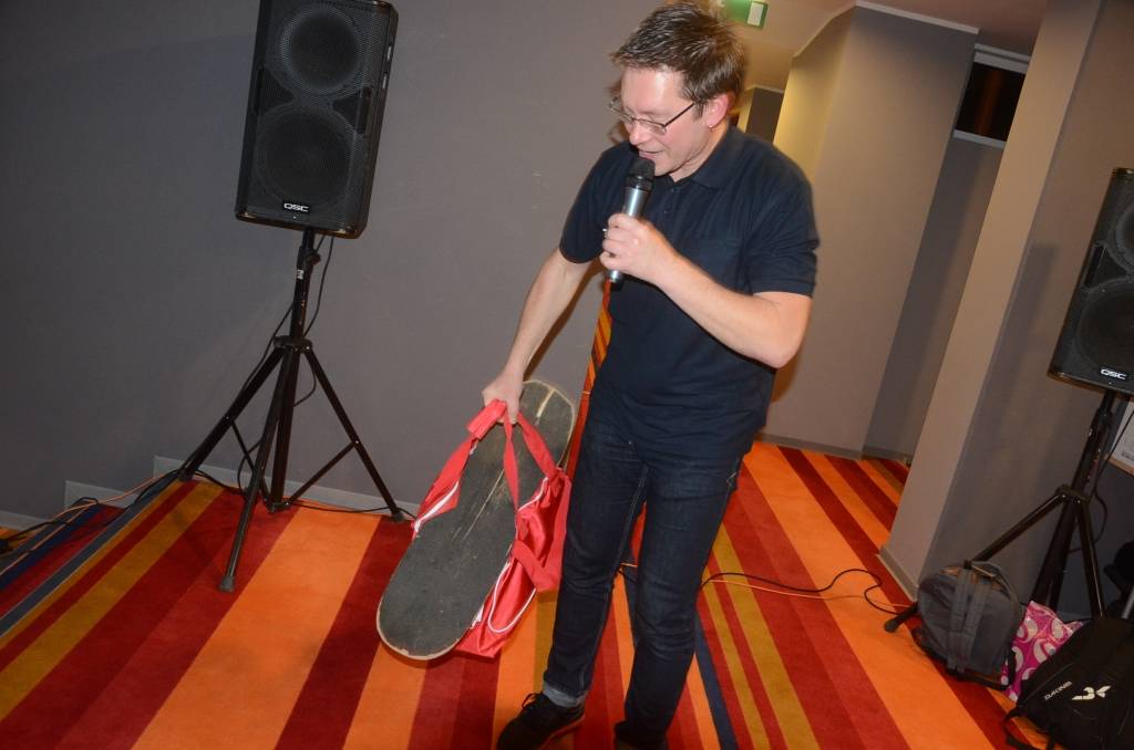 PAPILDINĀTS AR VIDEO. Liepājas skeitborda biedrība “Old School Skateboard Guys in Liepaja” pagājušās nedēļas nogalē Liepājas Olimpiskā centra VIP zālē svinēja biedrības sešu gadu jubileju, apbalvoja labākos skeitbordistus un pateicās saviem atbalstītājiem.