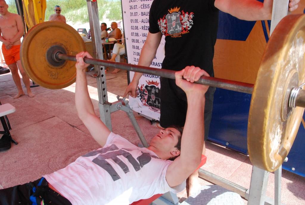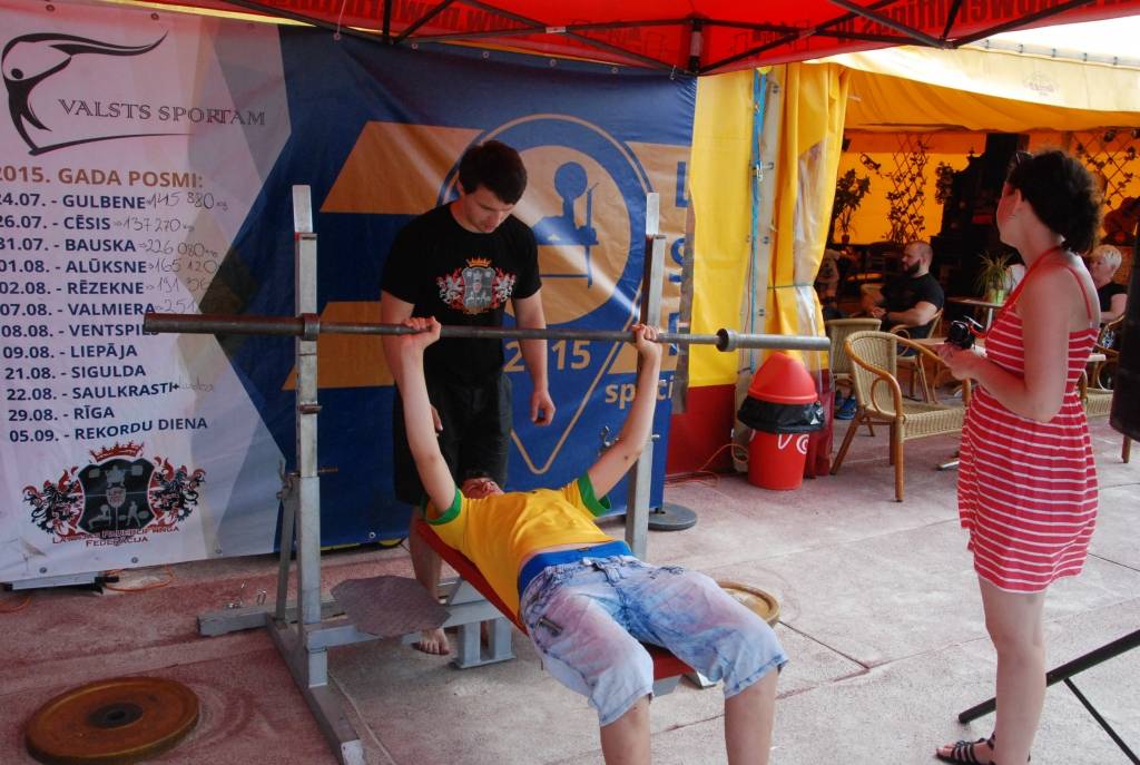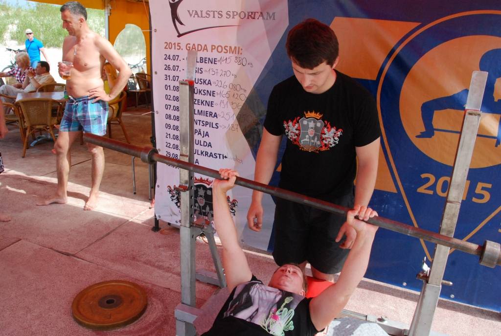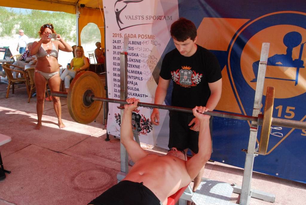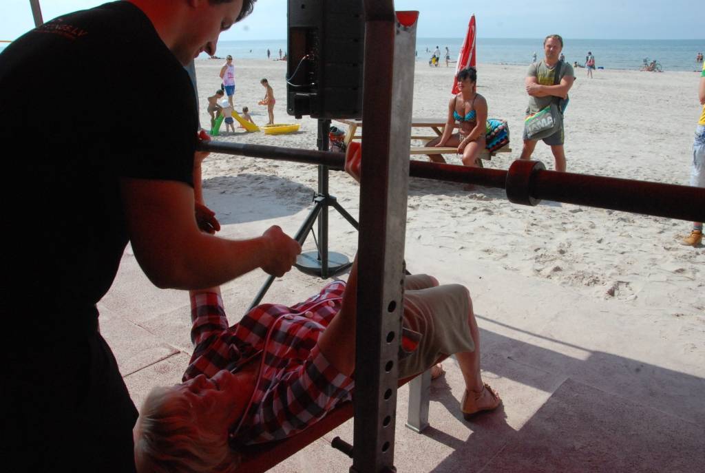 PAPILDINĀTS AR VIDEO. Svētdien, 9. augustā, līdz pulksten 16 Liepājas pludmales kafejnīcā “Vēju dārzs” ikvienam ir iespēja palīdzēt Liepājai uzvarēt svara stieņa spiešanā guļus pasākumā “Latvijas spēcīgākā pilsēta”.
