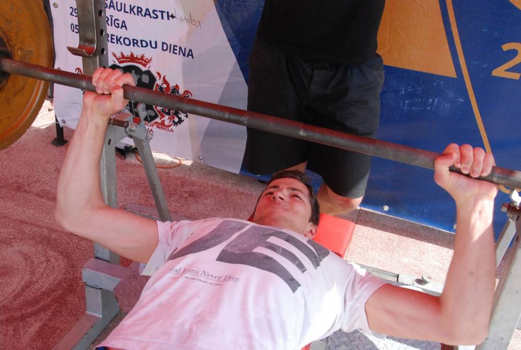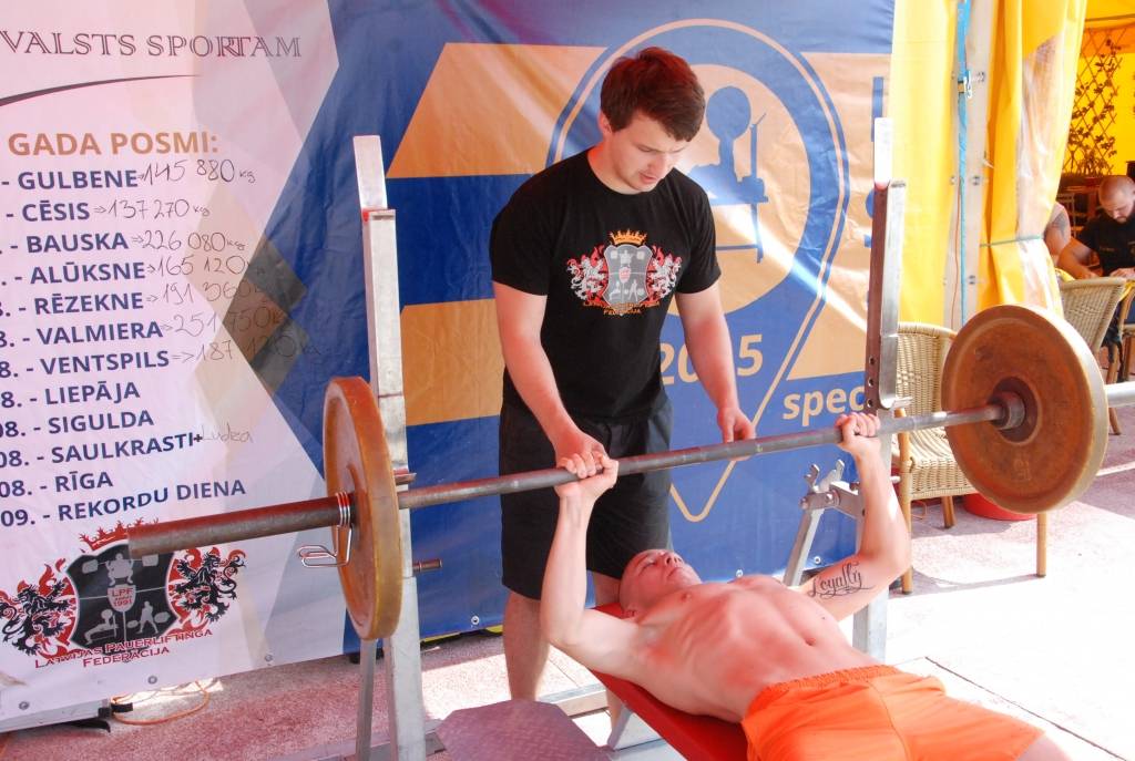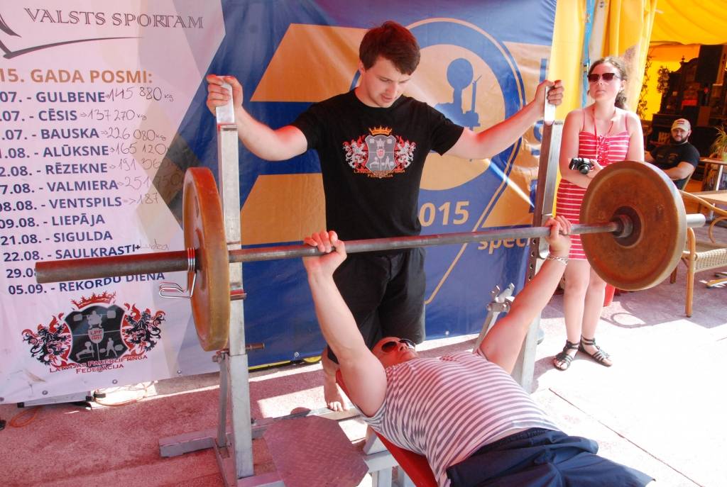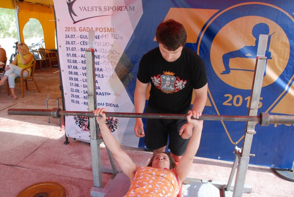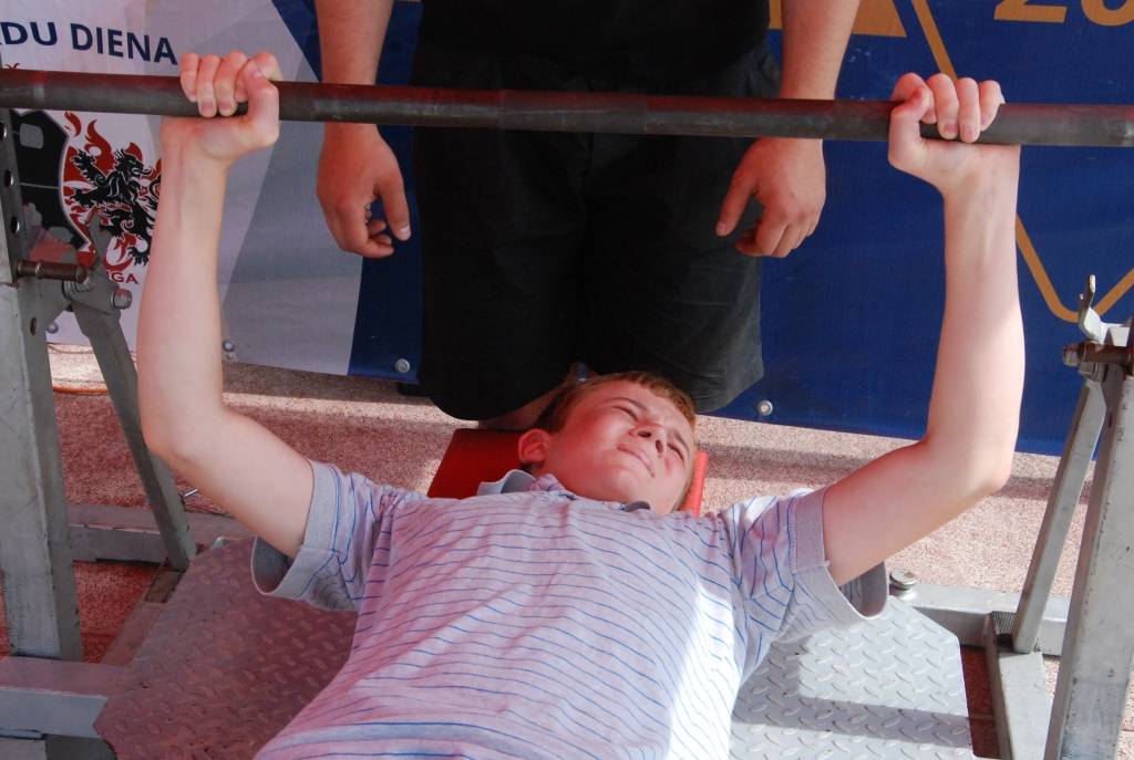 Dalībnieku uzdevums ir pēc iespējas vairāk reižu uzspiest svaru stieni. Sacensības notiek trīs grupās (jaunieši līdz 18 gadiem, sievietes un vīri), katras grupas laikā pirmie trīs labākie rezultāti tiks apbalvoti ar medaļām. Jaunieši un sievietes spiež 20 kilogramus smagu svaru stieni, bet vīru konkurencē stienis svēr 50 kilogrami.