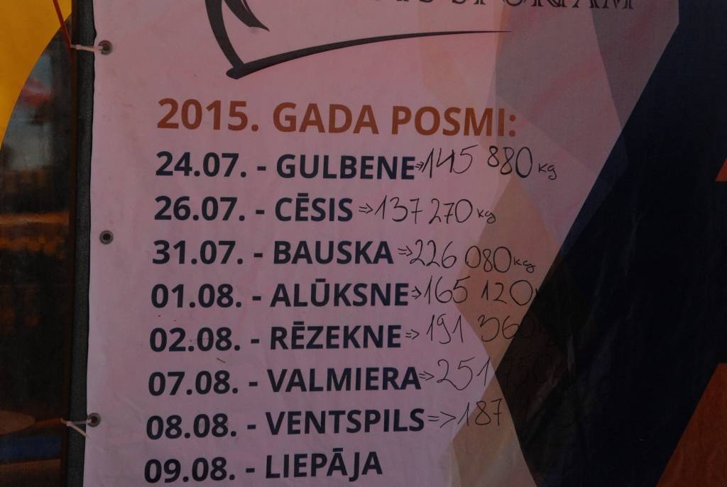 Sestdien, 8. augustā, sacensības bija Ventspilī, kur kopumā tika uzspiesti 187120 kilogrami. Kopumā jau piedalījušās septiņas pilsētas. Vadībā ir Valmiera ar 251750 kilogramiem, seko Bauska (226080 kilogrami) un Rēzekne (191360 kilogrami).