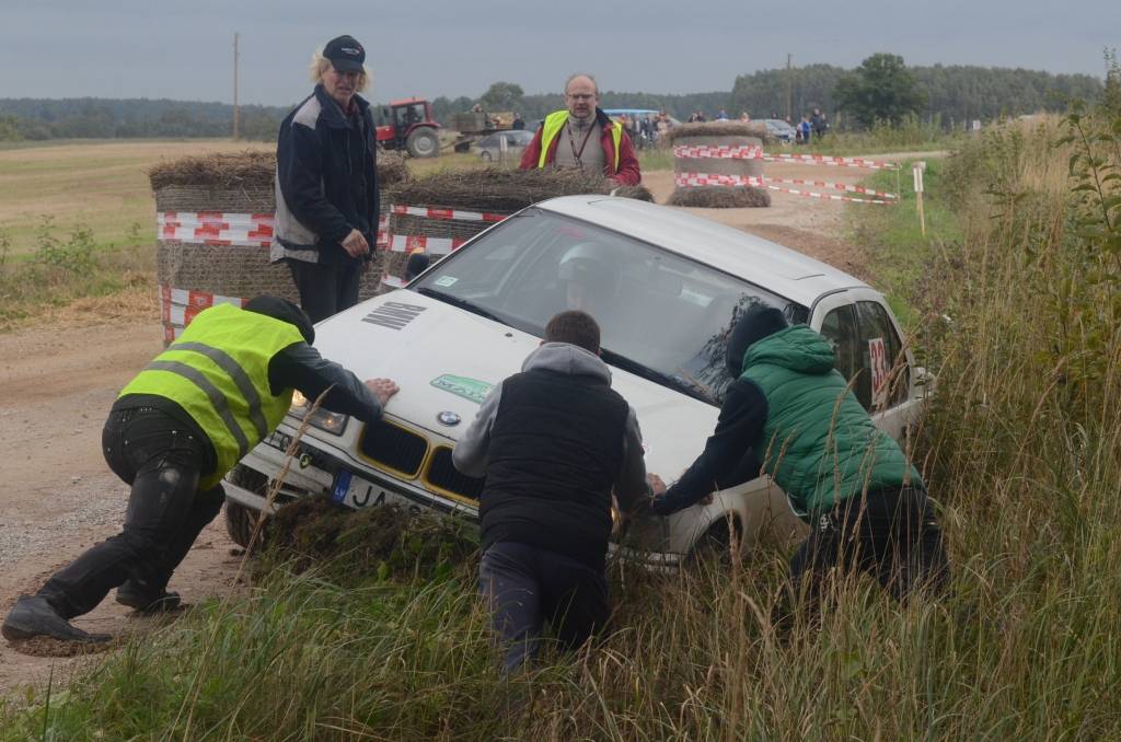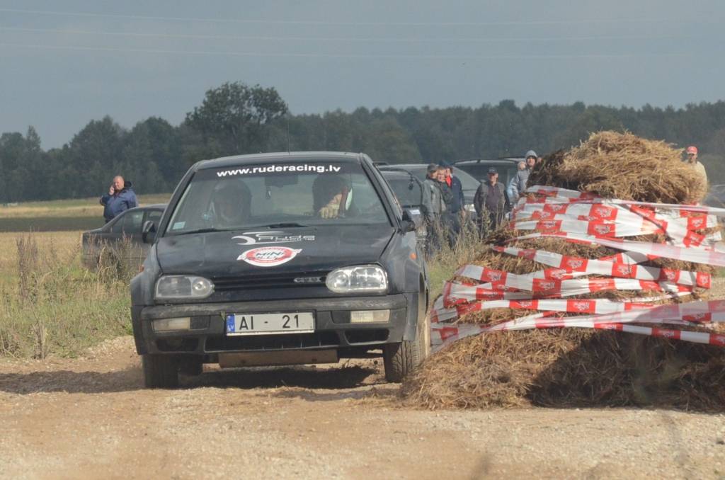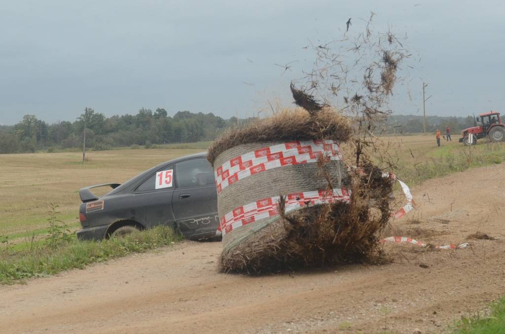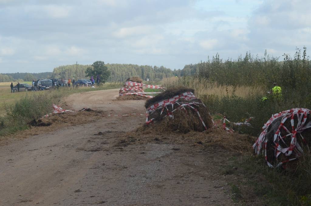 Pirmajā ātrumposmā ar šo vietu galā tika abi juniori Kristaps Skrodis un Mārtiņš Sesks, kā arī “1600” klases ekipāžas, bet pārējām jau radās problēmas. Tās vai nu iebrauca grāvī, vai lielākoties uztriecās virsū siena ruloniem. Apsargiem un skatītājiem darba bija gana, lai gandrīz vai pēc katras ekipāžas celtu rulonus no grāvja ārā un mudīgi noliktu vietā.