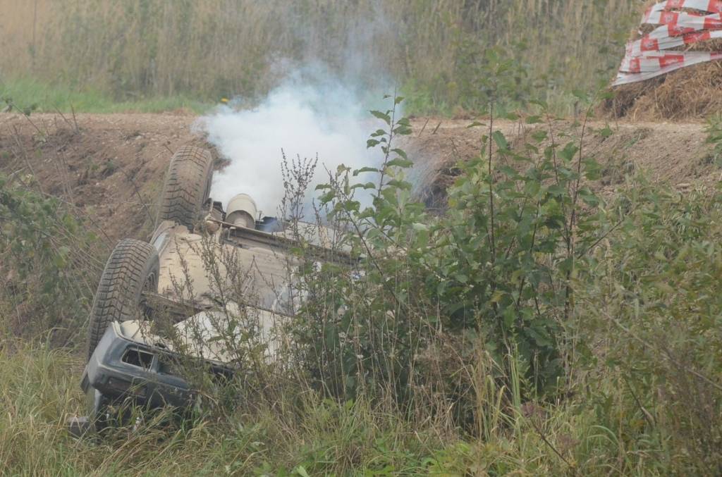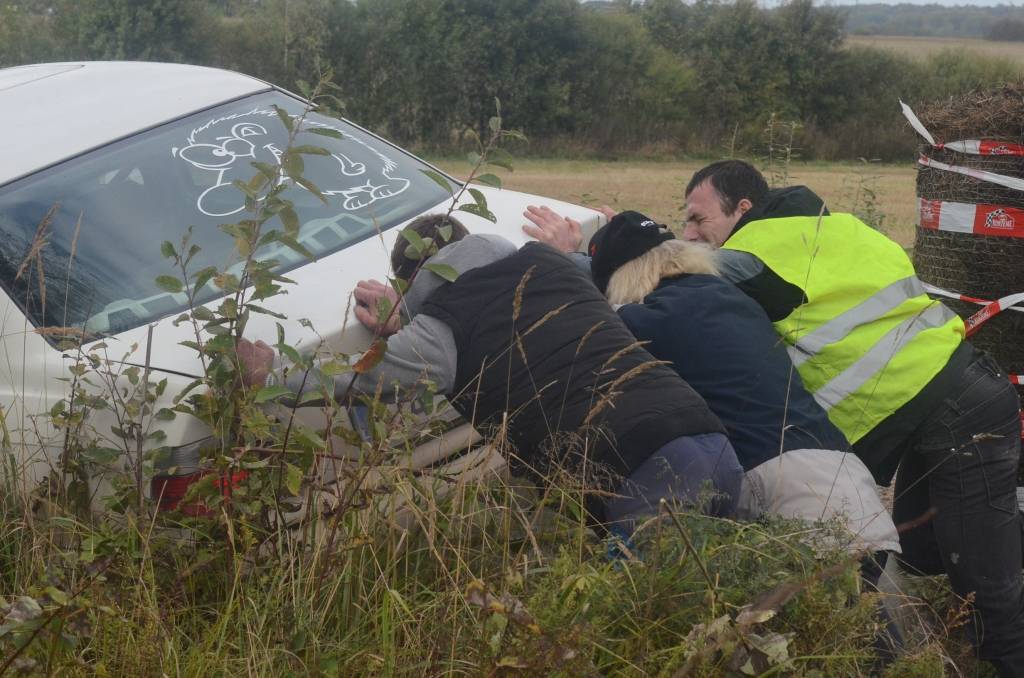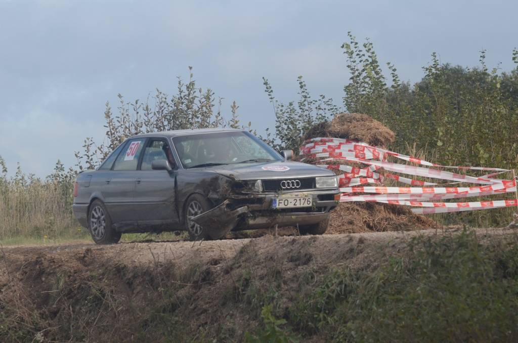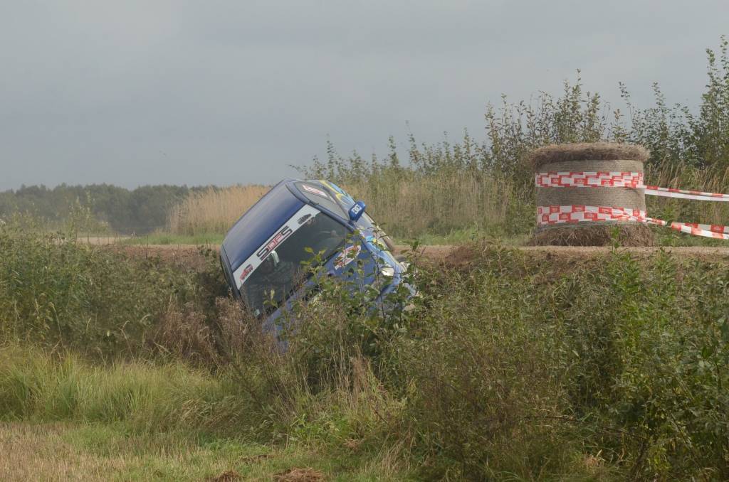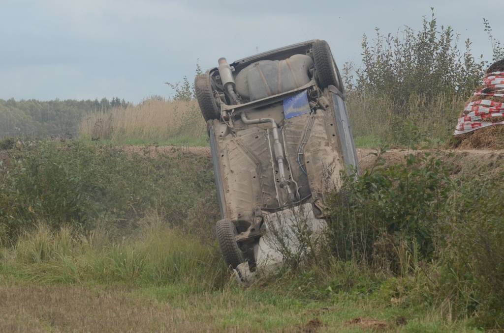 Pirmajā ātrumposmā ar šo vietu galā tika abi juniori Kristaps Skrodis un Mārtiņš Sesks, kā arī “1600” klases ekipāžas, bet pārējām jau radās problēmas. Tās vai nu iebrauca grāvī, vai lielākoties uztriecās virsū siena ruloniem. Apsargiem un skatītājiem darba bija gana, lai gandrīz vai pēc katras ekipāžas celtu rulonus no grāvja ārā un mudīgi noliktu vietā.
