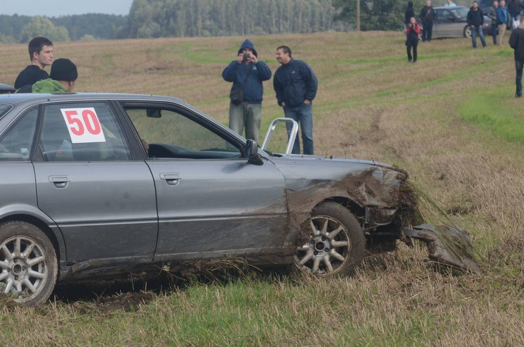 Šī ātrumposma otrajā reizē braucēji viltīgo vietu nebija ņēmuši vērā un grāvī palika Ata Līcīša ekipāža, kura bija spiesta izstāties. Pārējās pēc nokļūšanas nokultajā labības laukā sacensības varēja turpināt. Tie, kuri noturējās uz ceļa, savukārt izcēlās ar divu no trim siena rulonu izšķaidīšanas. Uz šī dopa trešo reizi gandrīz vai vairs nebija siena rulonu. Trešajā veikšanas reizē sportisti tika cauri bez negadījumiem.