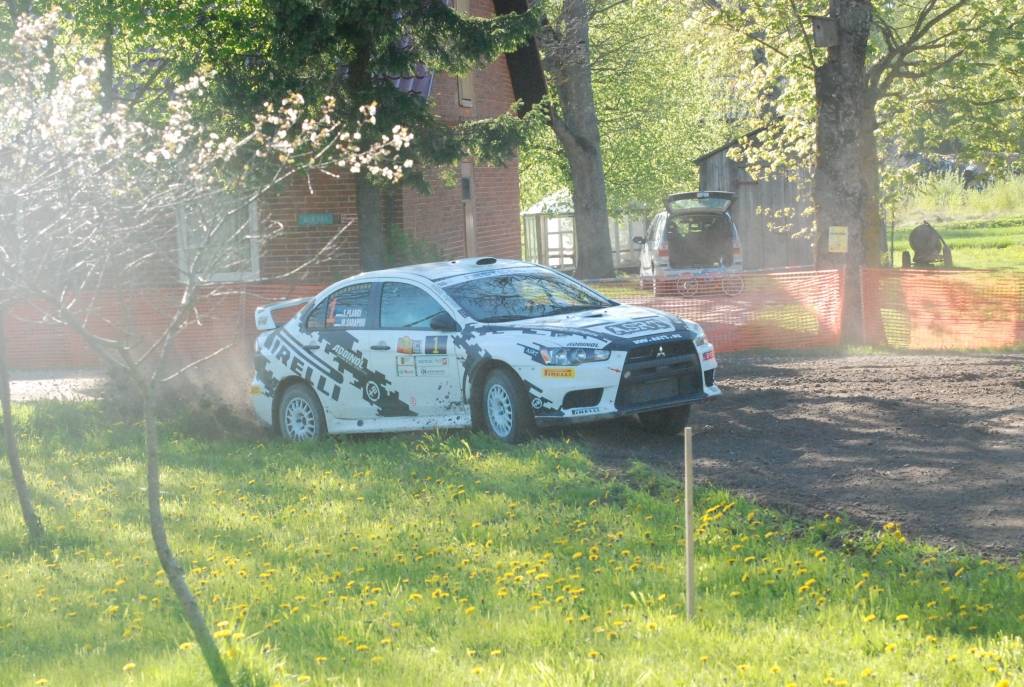 PAPILDINĀTS AR BILDĒM UN VIDEO. Latvijas rallija čempionāta (LRČ) ceturtā posma – rallija “Talsi” – absolūtajā ieskaitē līderis pēc sestdien veiktajiem pirmajiem sešiem ātrumposmiem ir pagājušā gada Somijas čempions igaunis Kaspars Koitla (“Mitsubishi Lancer Evo IX”).