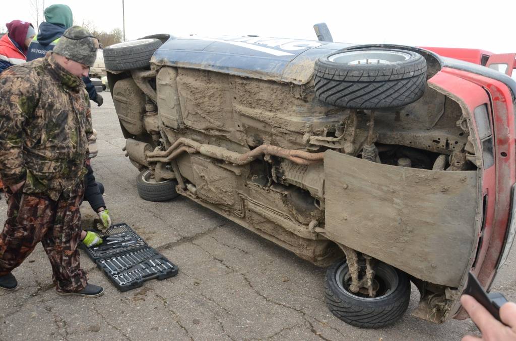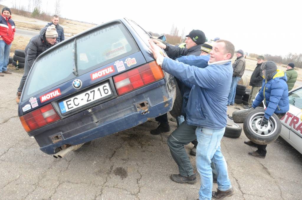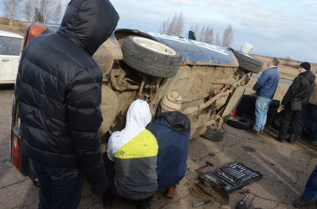 Sacensību pirmais brauciens uz mirkli tika apturēts, lai no grāvja izvilktu kādu no dalībnieku automašīnām. Video skatīt šeit.