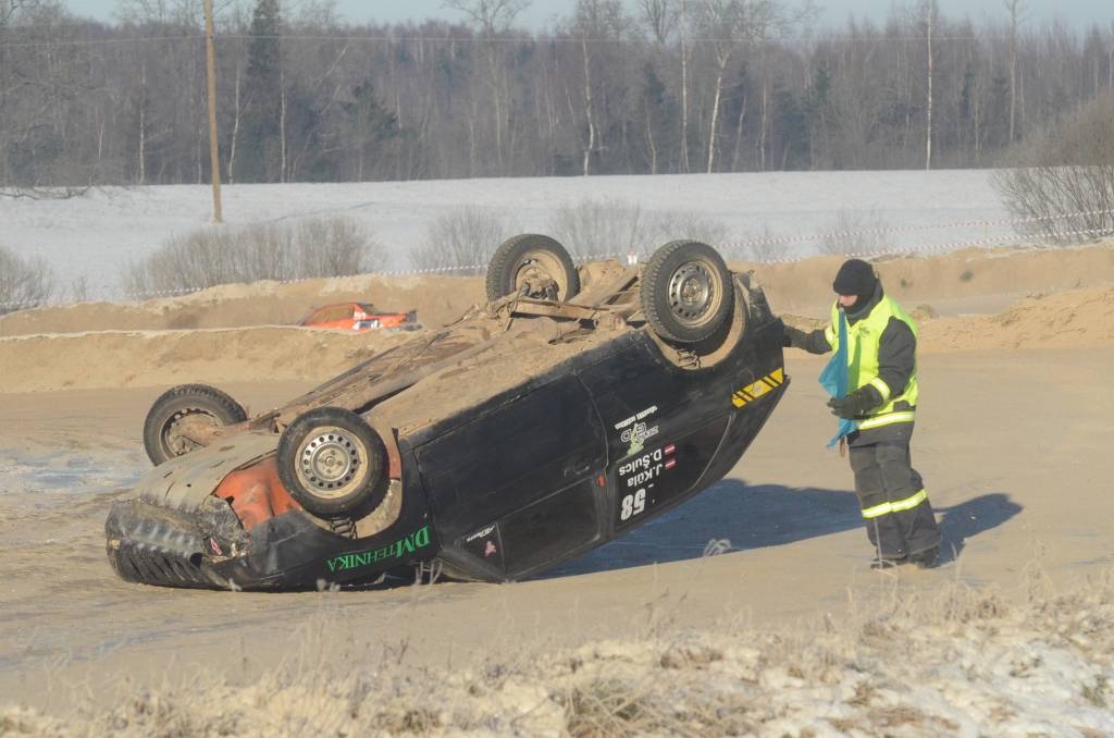 Sacīkstē tika fiksēti vairāki kūleņi – karuseļus izbaudīja Roberts Pelēnis, Dainis Šulcs, Rignars Aņišins, Reinis Lankups un Vladislavs Bergmanis, kurš finālā pārkūleņoja pāri trases valnim, vēstīts autocross.lv.