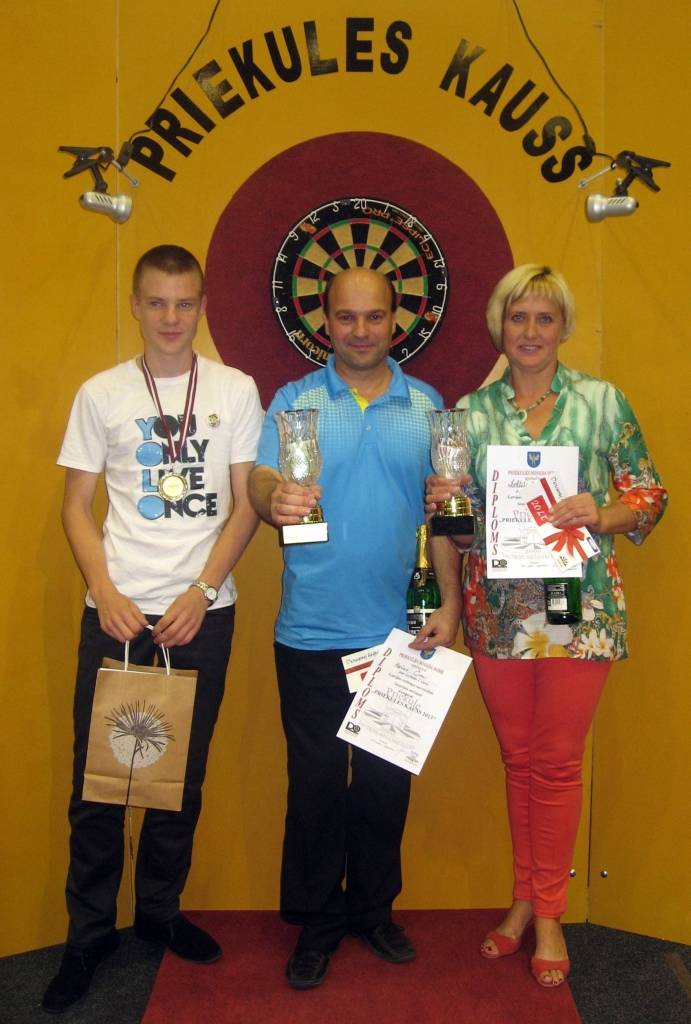 Dāmu konkurencē uzvarēja Smiltenes Darta kluba pārstāve Zeltīte Strade, otrā bija vaiņodniece Irēna Bauze (šautriņu mešanas klubs “Priekule”), bet trešajā vietā ierindojās sporta kluba “Bauskas Darts” pārstāve Areta Kovaļevska un vaiņodniece Kristīne Bauze (šautriņu mešanas klubs “Priekule”), informē sacensību organizators Madars Razma.