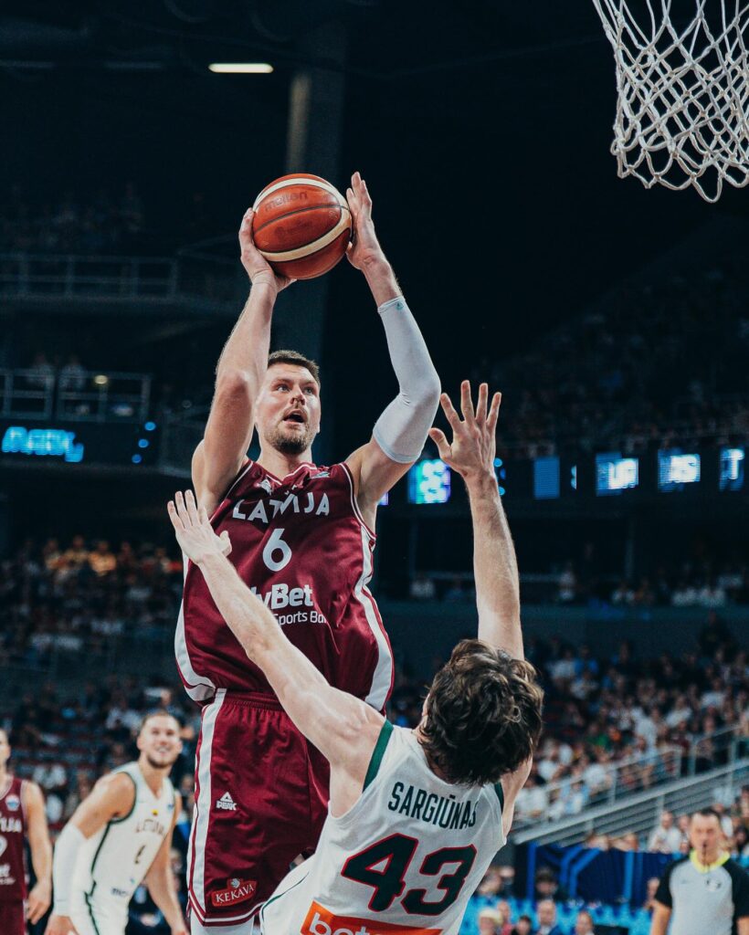 Pēdējos divus punktus puslaikā, raidot bumbu grozā no augšas, guva Porziņģis – 37:47.