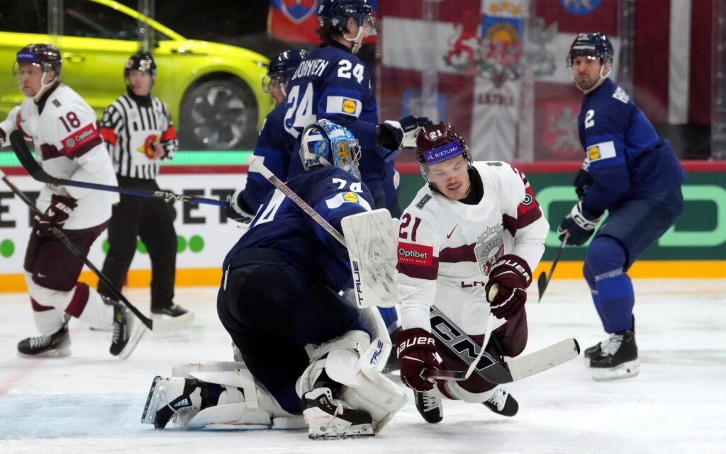 Latvijas vīriešu hokeja izlase sestdien Stokholmā pasaules čempionāta piektajā spēlē ar rezultātu 1:2 (0:0, 0:1, 1:1) zaudēja Somijai.