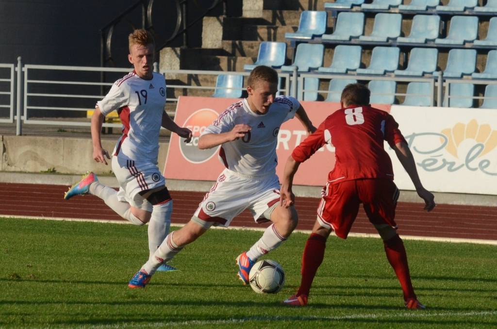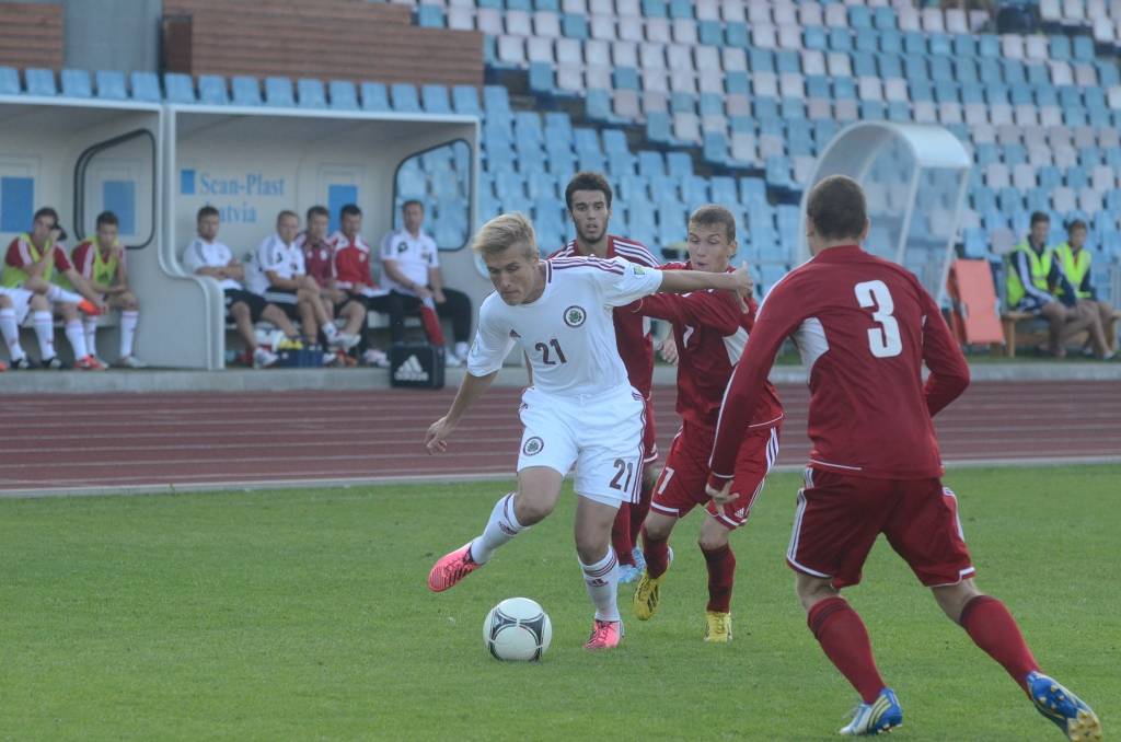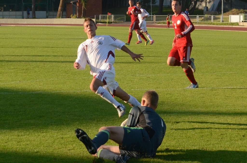 Latvijas U18 izlase pirmajā puslaikā vadībā izvirzīja “Liepājas metalurgā” spēlējošais Andris Krušatins.