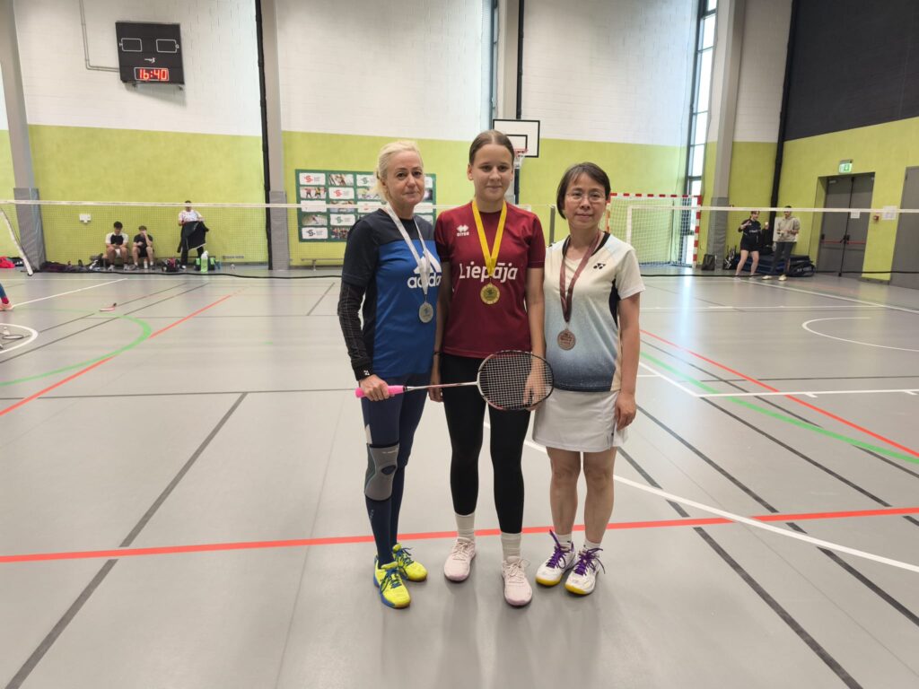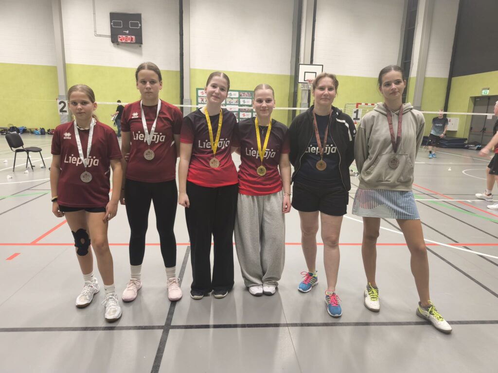 Visi trīs goda pjedestāla pakāpieni liepājniecēm B grupas dubultspēlēs, kur zelta medaļas Ievai Mežalei ar Andželīnu Vinkleri, sudraba Alisei Antanei ar Paulu Mežali, bet bronza Evai Filkai ar Katrīni Vasiljevu (BK Imanta), portālu “ReKurZeme” informē Liepājas badmintonistu treneris Aigars Brečs.