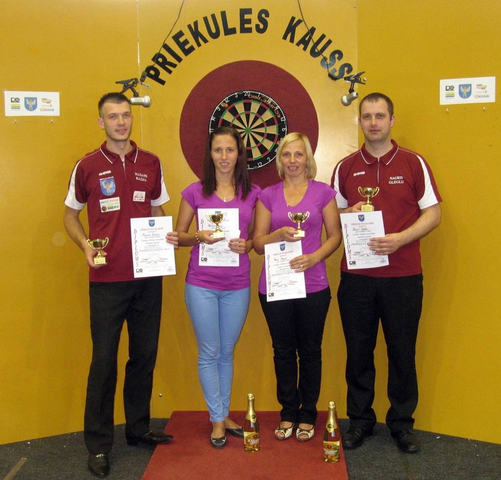 Kungu konkurencē triumfēja Cēsu Darts Kluba „50” šautriņu metējs Nauris Gleglu un priekulnieks Madars Razma, kuri spraigā finālā ar rezultātu 5:4 pārspēja Dariusu Labanausku un Roku Aniuli no Lietuvas. Augsto 3. vietu kungiem izcīnīja priekulnieks Aigars Strēlis ar vaiņodnieku Kristapu Mickusu un Rūdolfs Mežeckis no Zaķumuižas ar rīdzinieku Žani Buklovski. Vēl no ŠMK „Priekule” pārstāvjiem 5. vietu izcīnīja Lauris Anškēvics ar Armandu Strelēviču, Arvis Kuncītis ar Jāni Kauci un Jānis Birznieks ar Andri Ziemeli, savukārt 9. vietu ieņēma Artūrs Bauze ar Artūru Auderu un Ēriks Gertners ar SK „Izaicinājums” pārstāvi Jāni Daukšu.