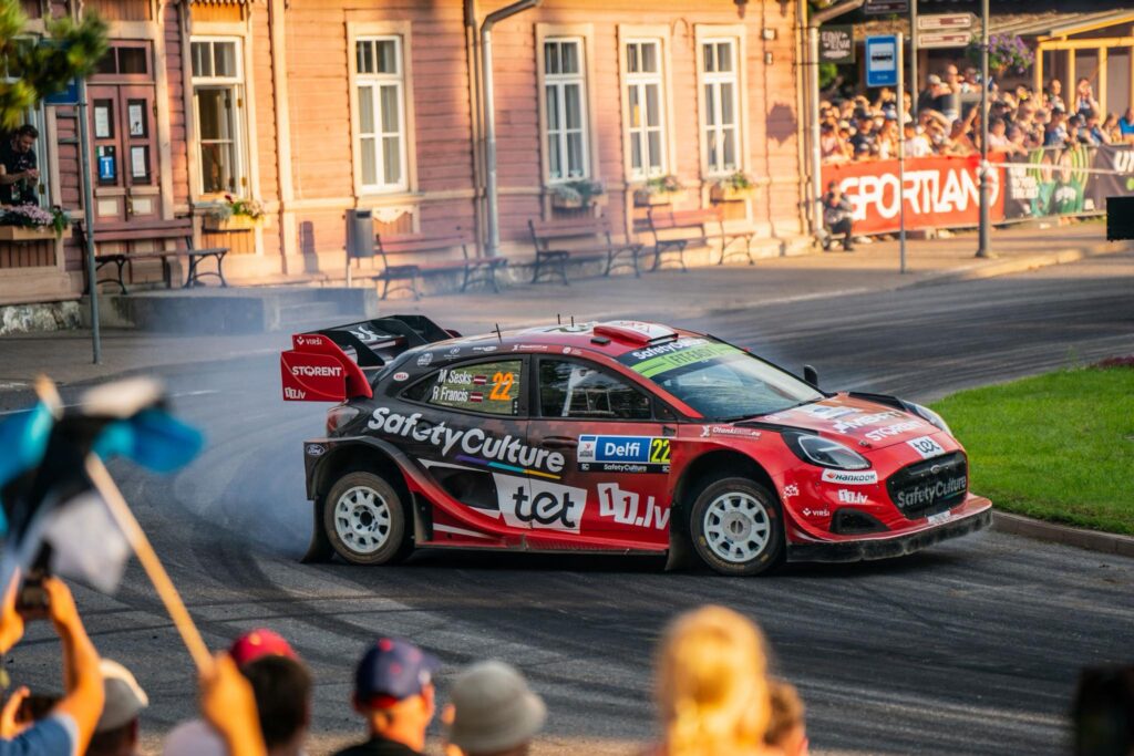 Liepājas rallija ekipāža ar pilotu Mārtiņu Sesku un stūrmani Renāru Franci piektdien pēc pasaules rallija čempionāta (WRC) astotā posma – Igaunijas rallija – pirmās pilnās sacensību dienas saglabā kopvērtējumā devīto vietu.