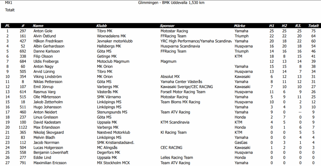 Udevallas trasē, kur augustā risināsies arī MXGP sacensības, notika Zviedrijas čempionāta pirmais posms. “MX Magmum” komandas braucējs Freibergs devās cīņā ar vietējiem braucējiem katrā no MX1 klases finālsacīkstēm spēja progresēt, vēsta “Sportacentrs.com”.