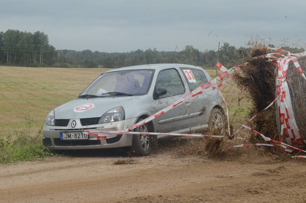 VIDEO: Ekipāža Renārs Račinskis/Matīss Šadris minirallijā "Priekule" ietriecas siena ķīpā
