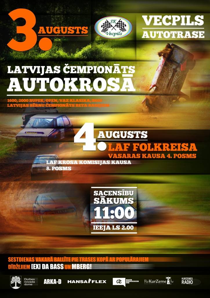 Svētdien pulksten 11 Vecpils autotrasē tiks dots starts Latvijas Automobiļu federācijas folkreisa Vasaras kausa ceturtajam posmam un Krosa komisijas kausa izcīņai autokrosā astotajam posmam. Folkreisā savu dalību pieteikuši 24 sportisti. Par godalgotām vietām cīnīsies arī vairāki “SK Vecpils” pārstāvji: Sandis Džeriņš (Vecpils), Andis Dreimanis (Vecpils), Reinis Lankups (Durbe), Matīss Šadris (Aizpute), Mairis Zēns (Grobiņa), Egils Dreimanis (Liepāja) un Viesturs Pakulis (Liepāja). Krosa Komisijas autokrosa kausā brauks O. Troika, E. Strēlis un grobiņnieks Gatis Lībis.